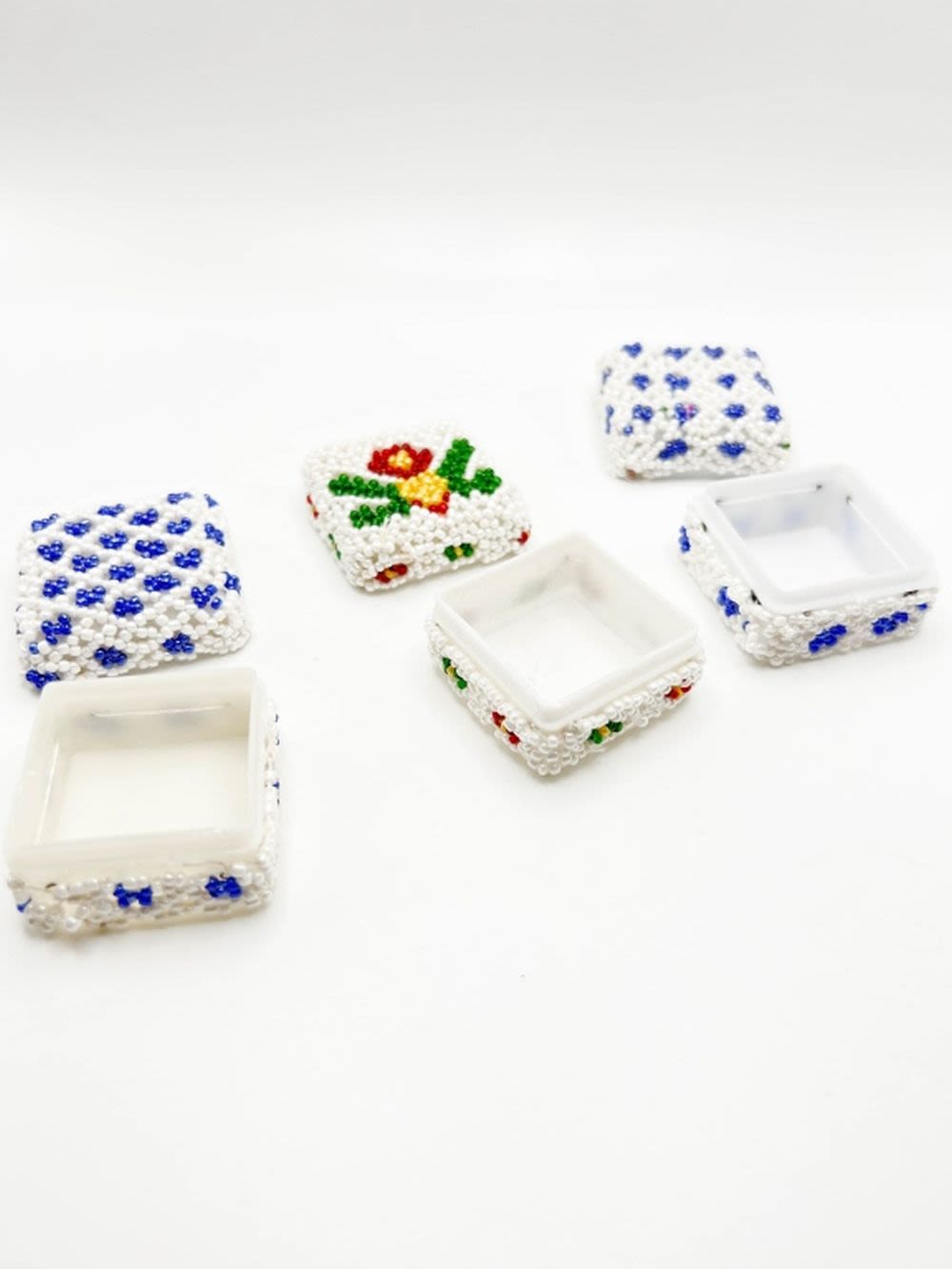 BEADED TRINKET BOXES 3 TOTAL WITH BEADED LIDS