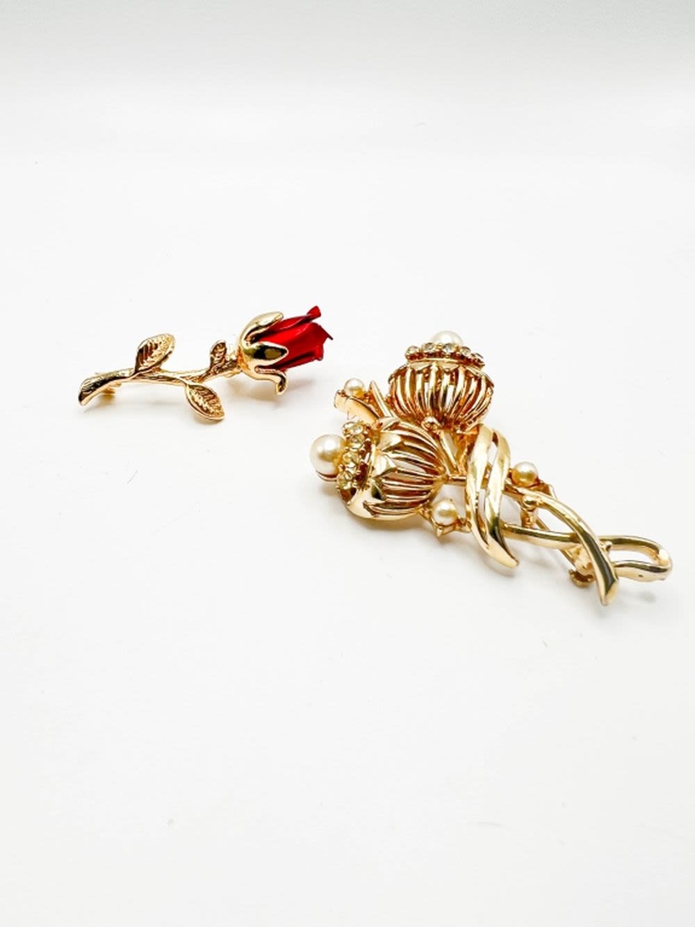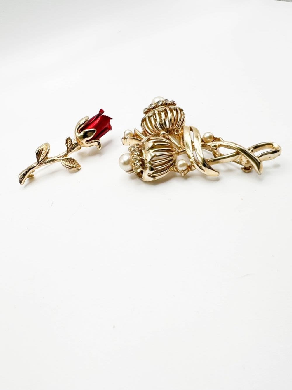TWO FLORAL BROOCHES