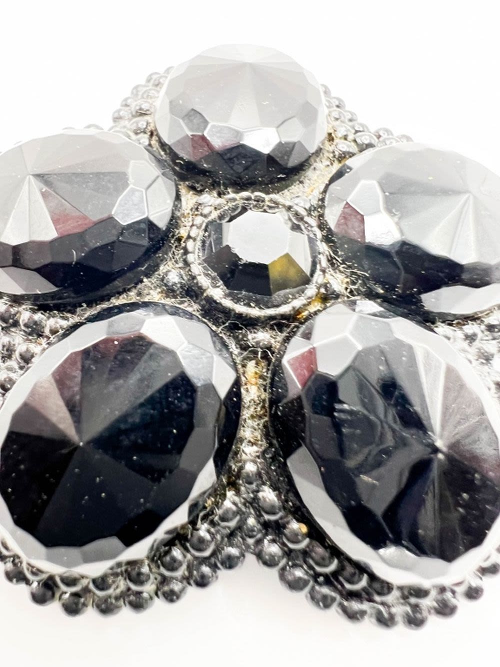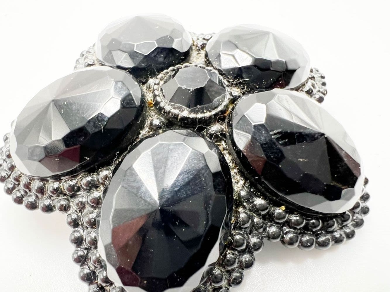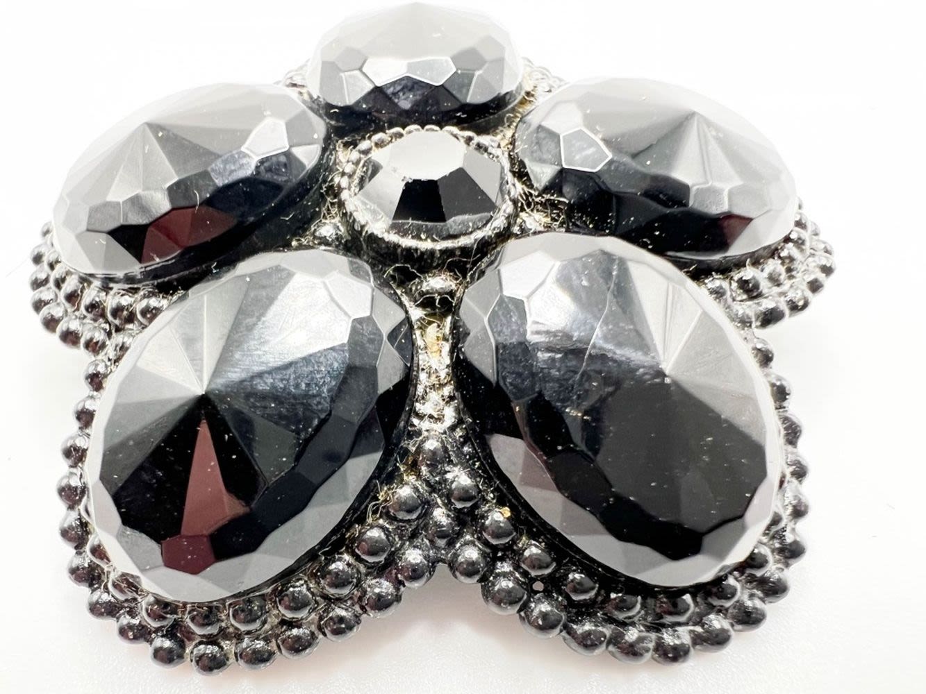 HUGE FACETED BLACK STONE JAPPANNED BROOCH, WHAT AN AMAZING FIND HERE, THIS IS DEF A KEEPER !!!