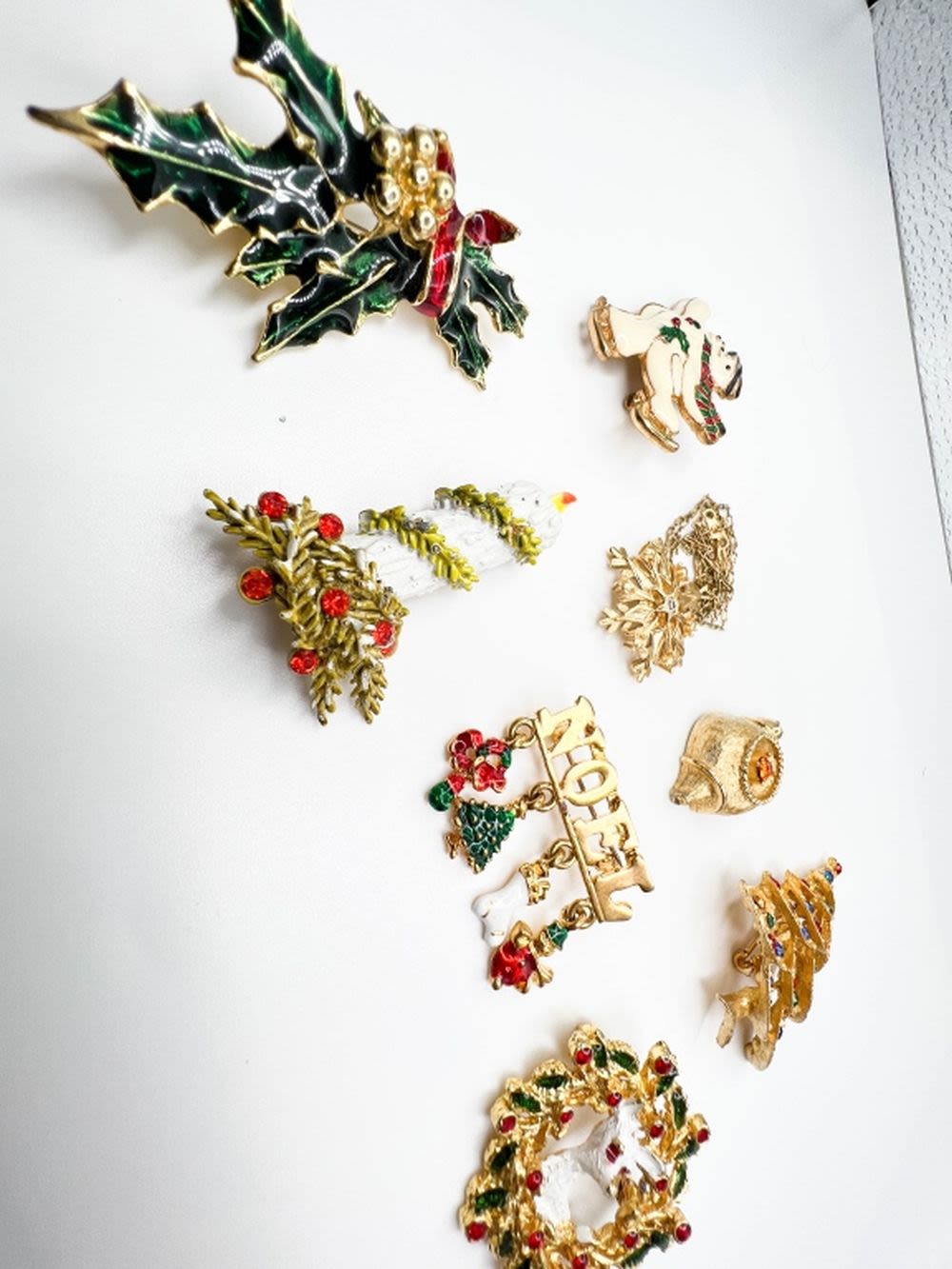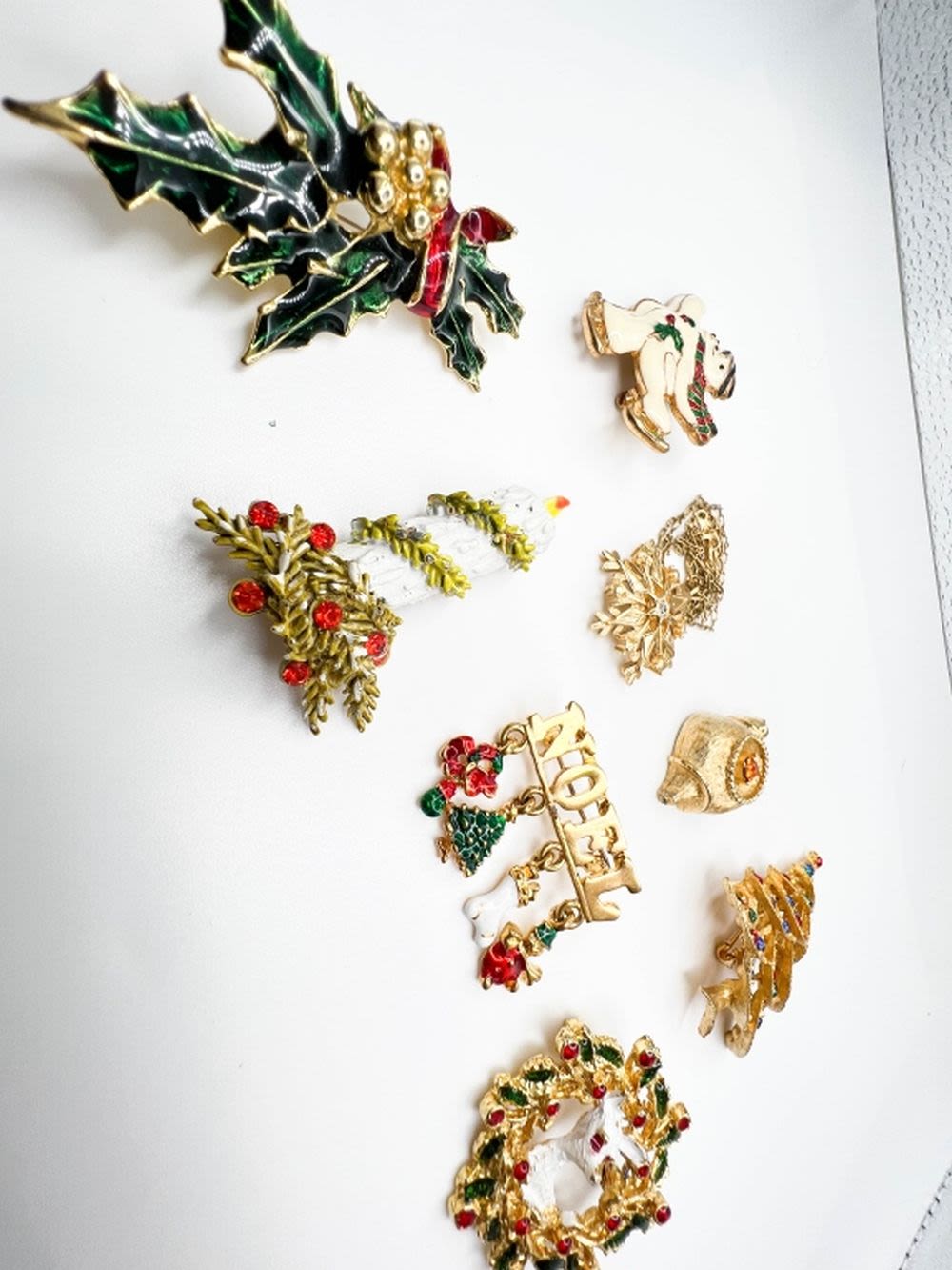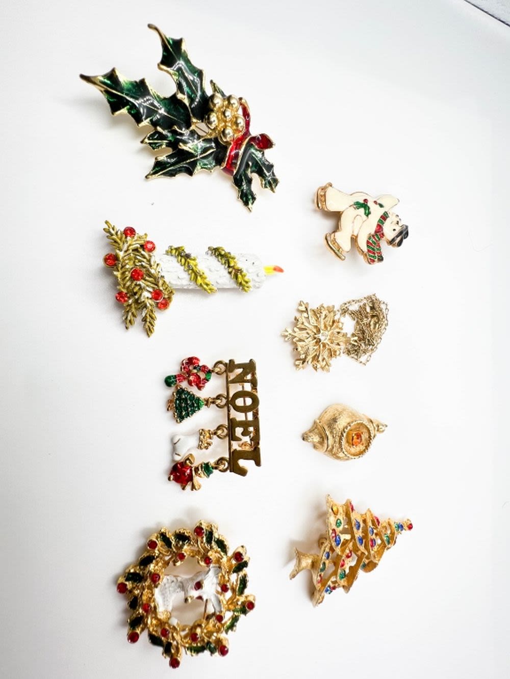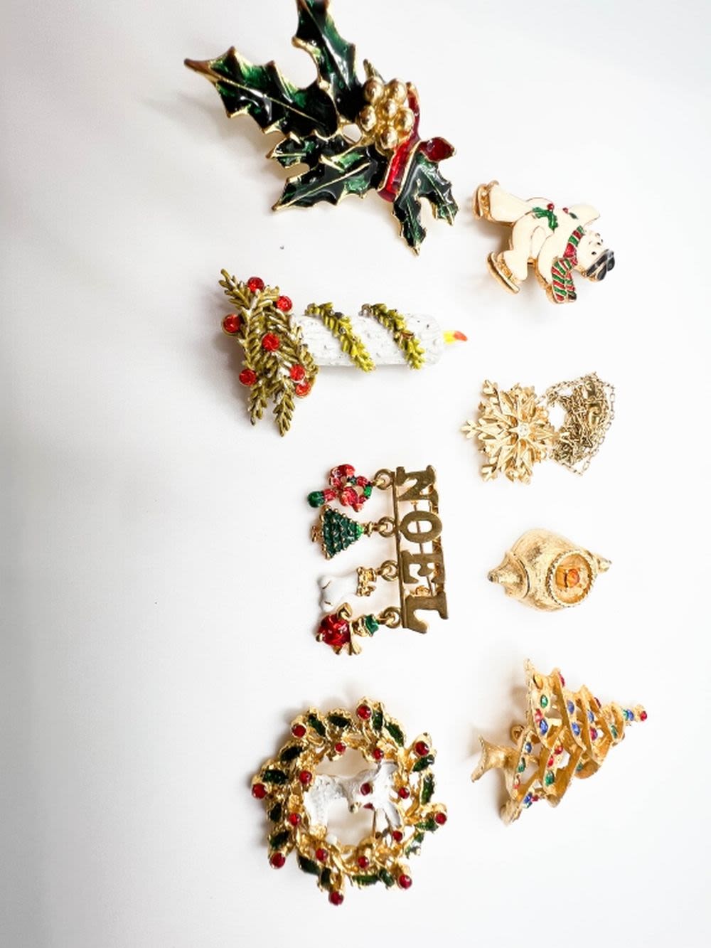 CHRISTMAS LOT BROOCHES, BIG LOT OF CHRISTMAS BROOCHES, TREES, BELLS, SNOWMAN, WREATH , ENAMEL AND STONE BEAUTIFUL BROOCHES FOR CHRISTMAS AND THE HOLIDAYS
