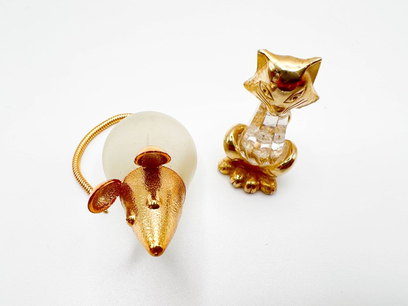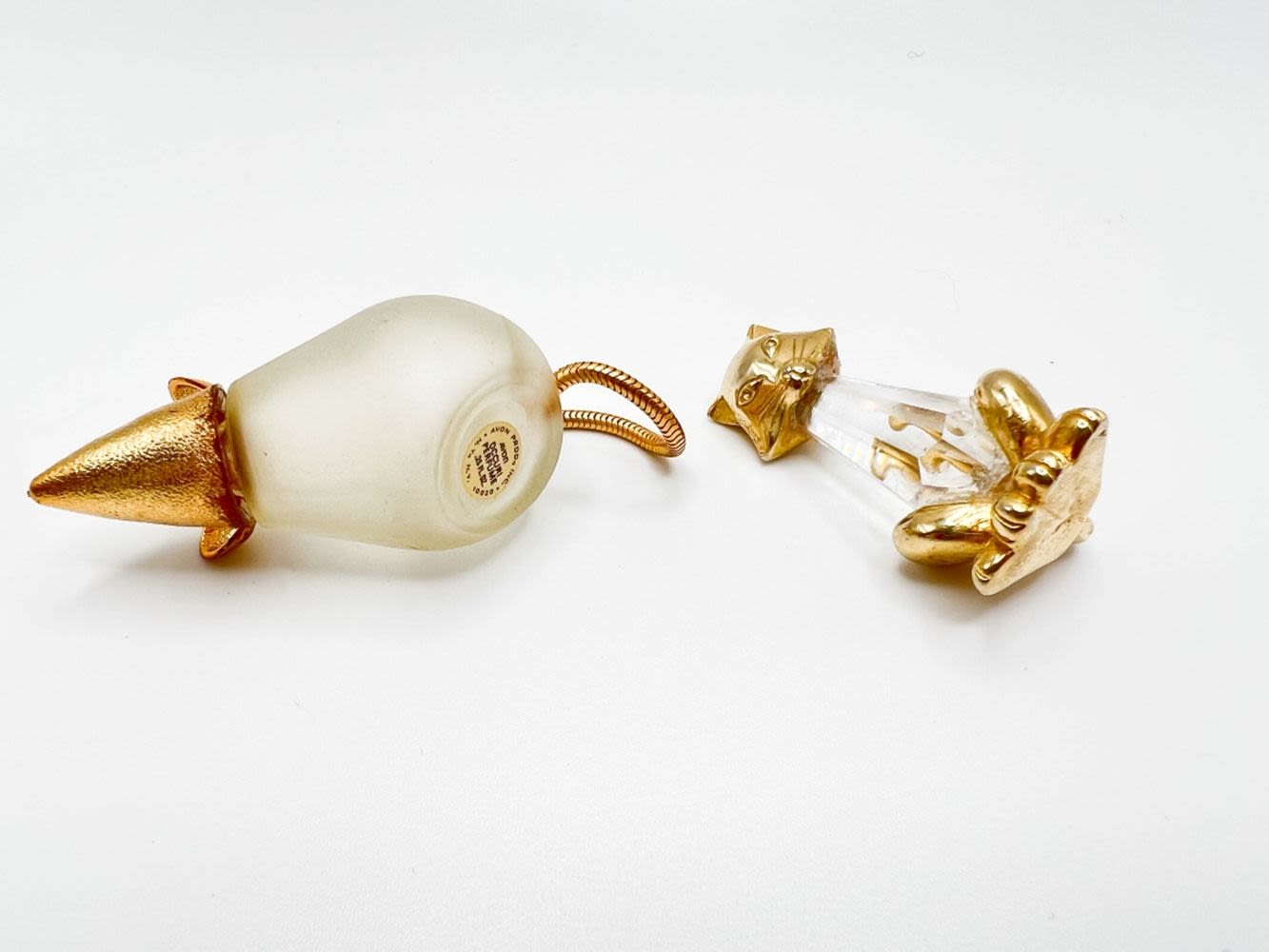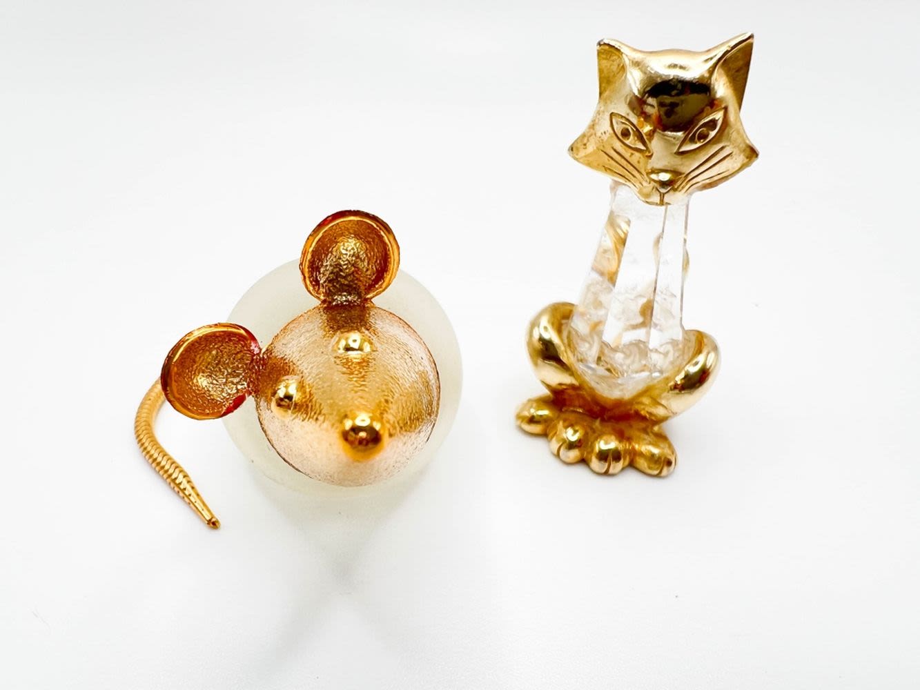 CAT CRYSTAL FIGURINE AND MOUSE WITH TAIL PERFUME BOTTLE , ADORABLE !