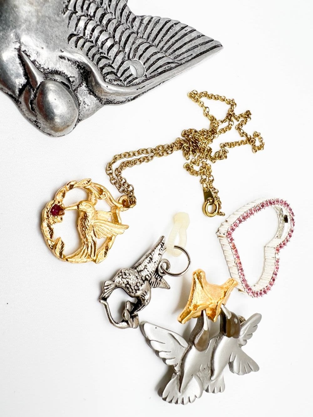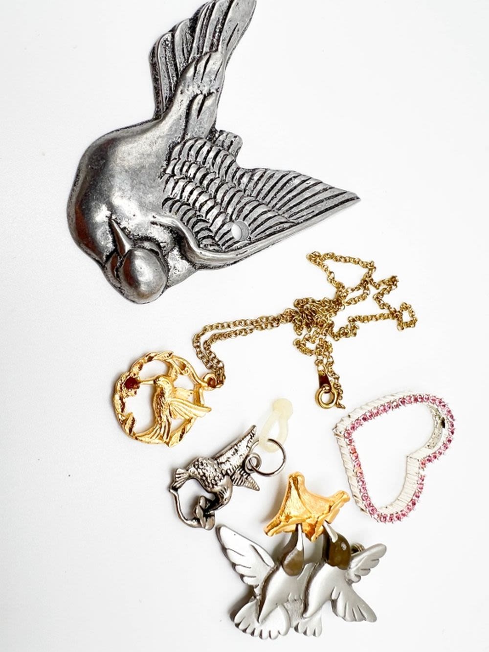 HUMMINGBIRDS PENDANTS, SILVER AND GOLD TONE, SEVERAL SIZES , PRETTY HUMMINGBIRDS