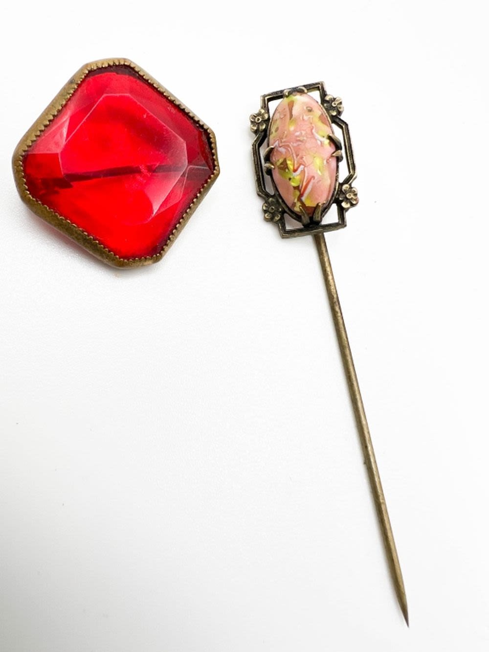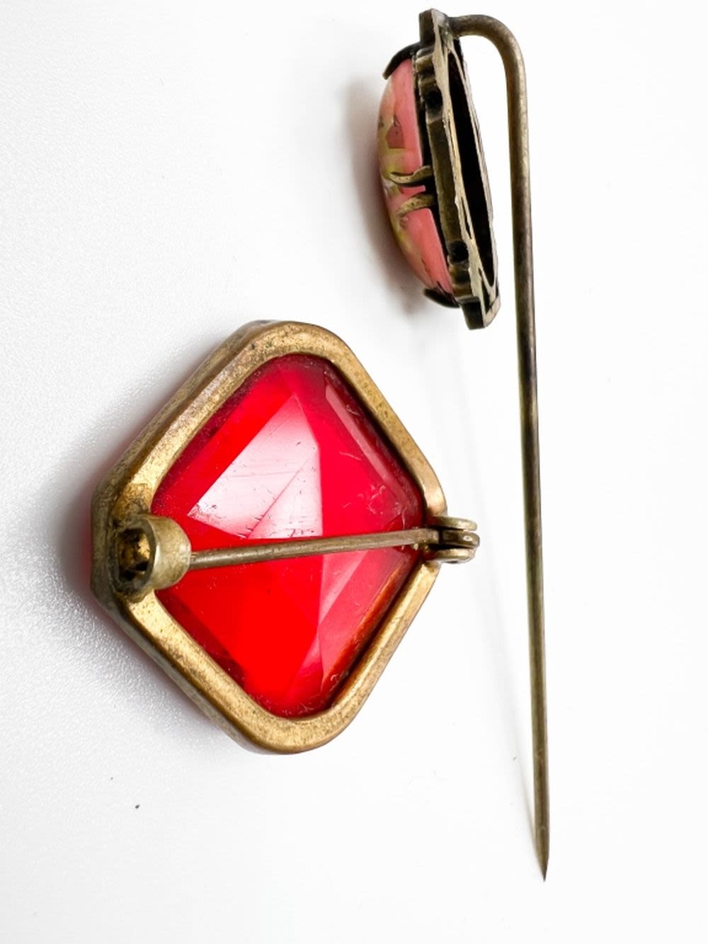 C CLASP ANTIQUE RED SOLID STONE BROOCH AND STICK PIN