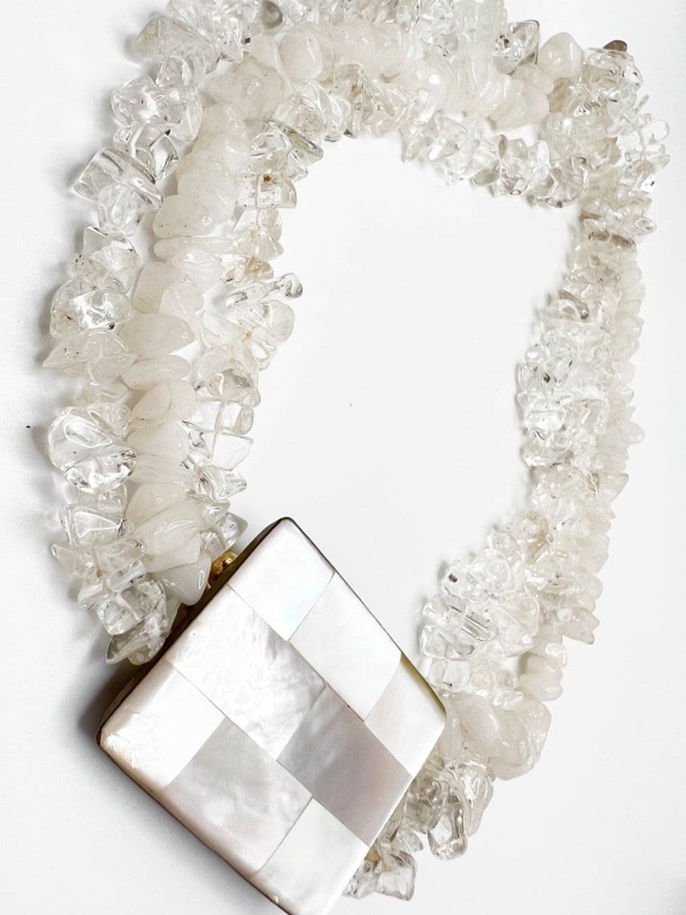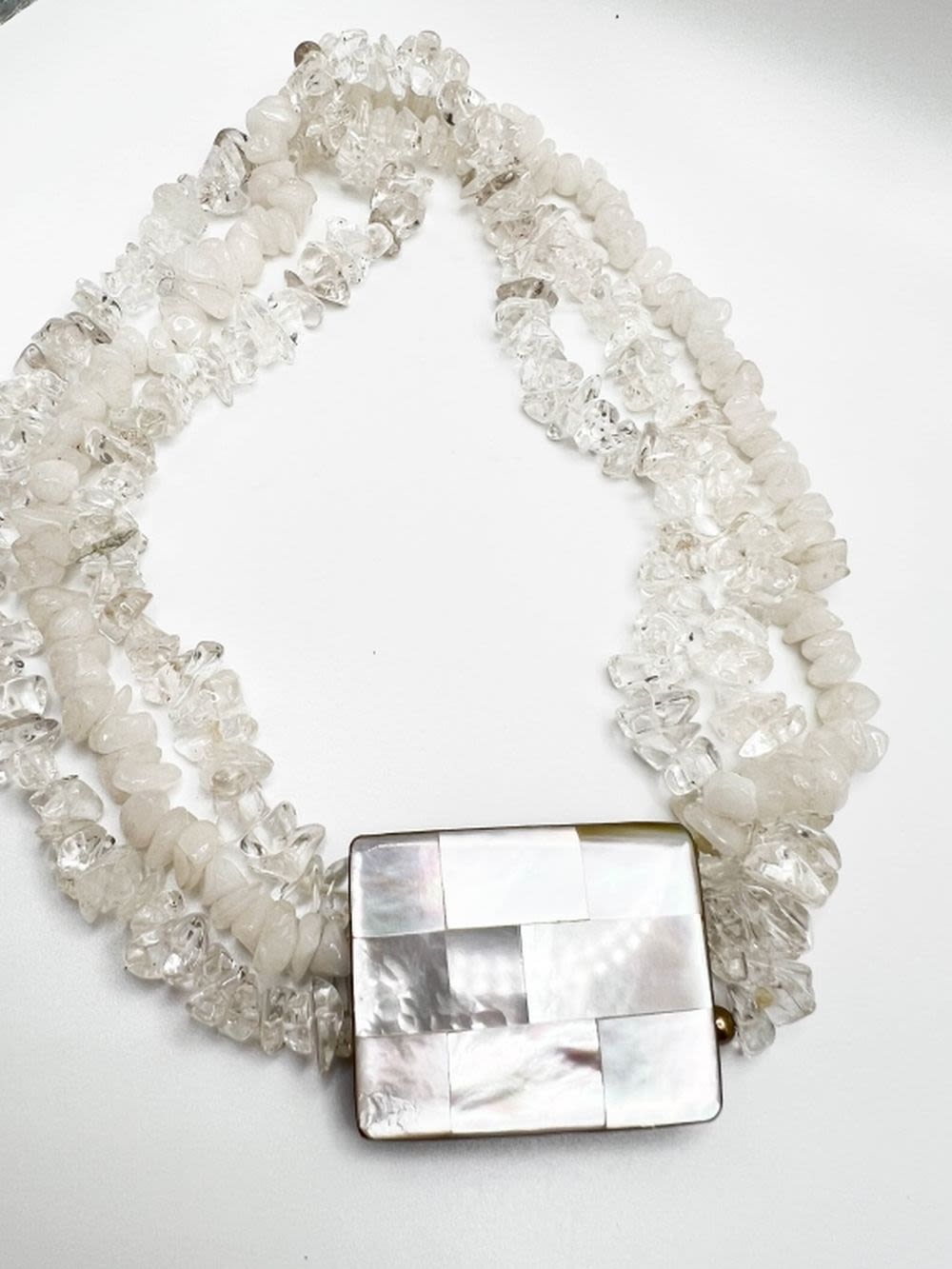 STUNNING STONE NECKLACE WITH OPALESCENT PENDANT, VERY HEAVY, QUALITY !