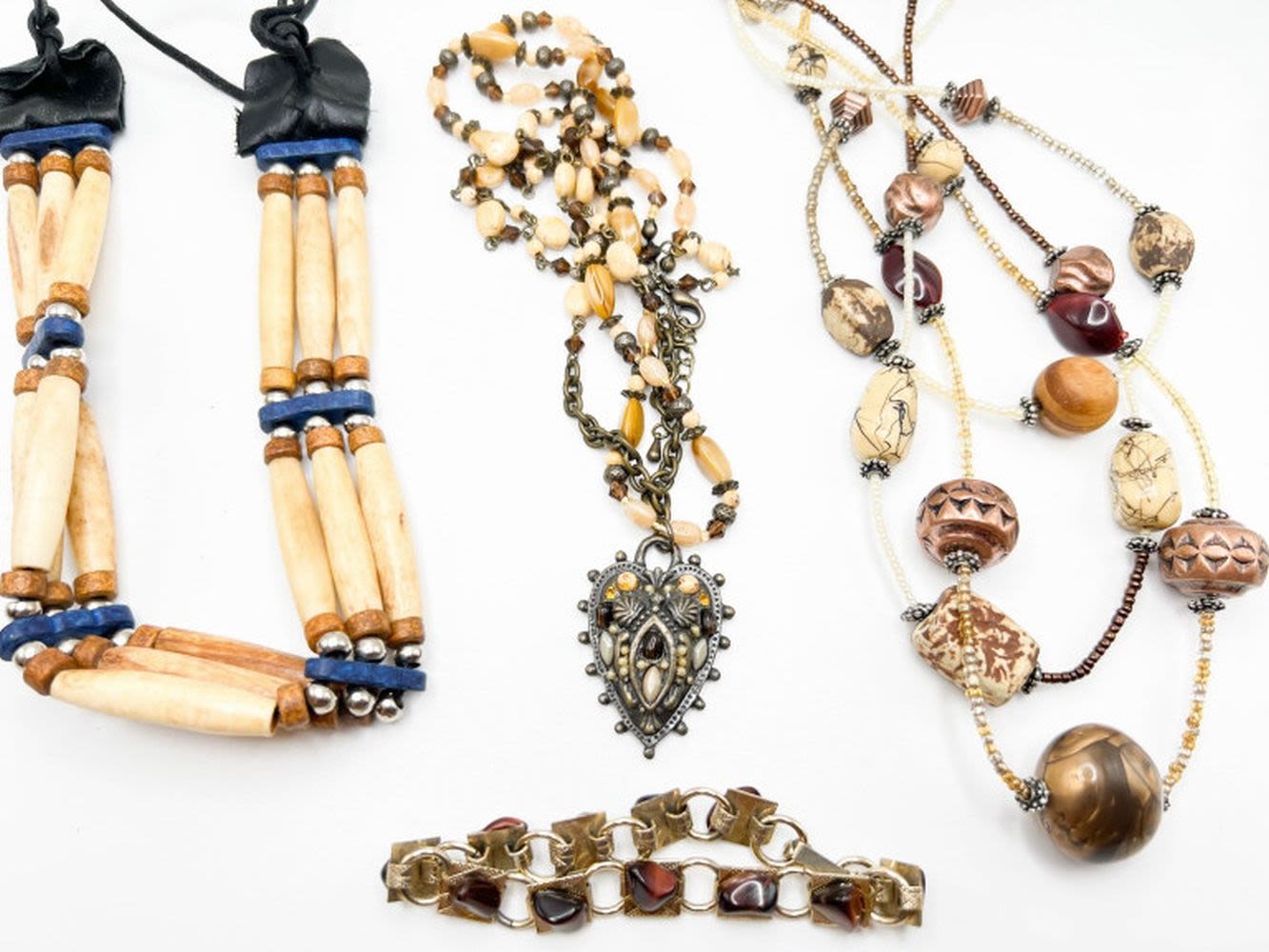 OCEAN SPRAY NECKLACE , 2 OTHER NECKLACE, 1 BRACELET IN SAME COLORS TO MATCH