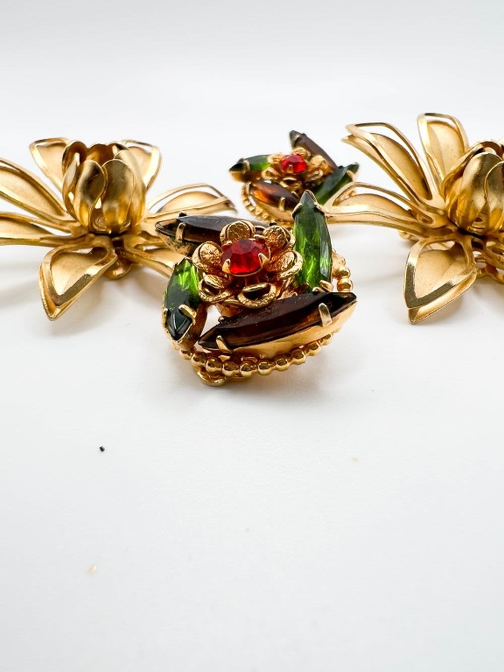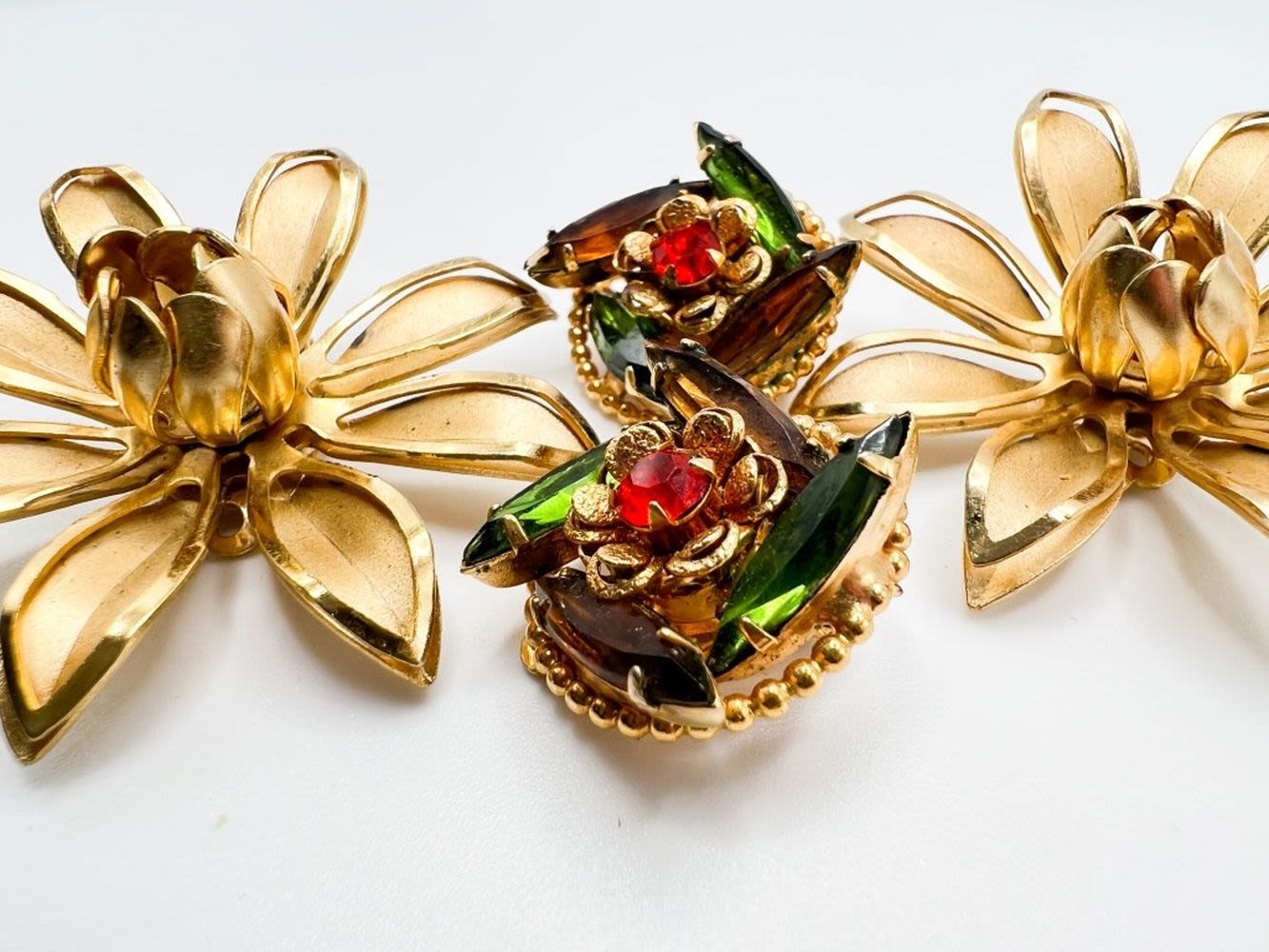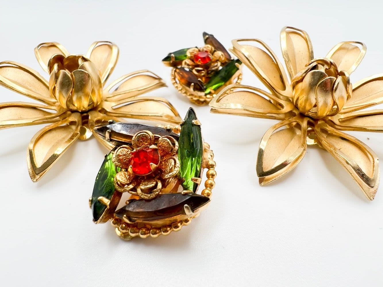 LISNER LG GOLD TONE FLORAL DAISY EARRINGS SET AND WEIISS COLOR STONE EARRINGS SET