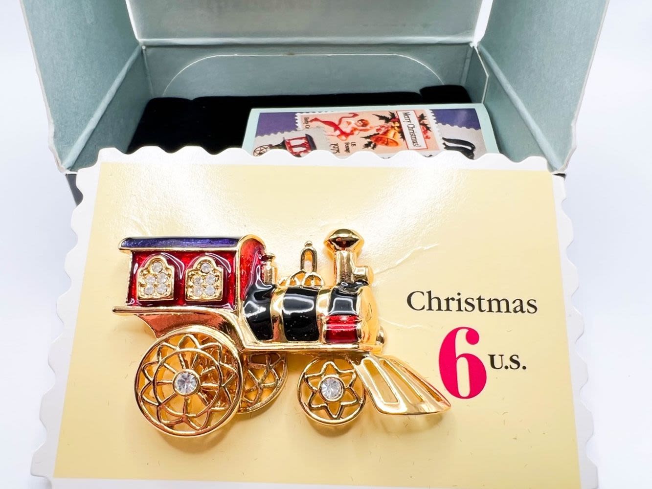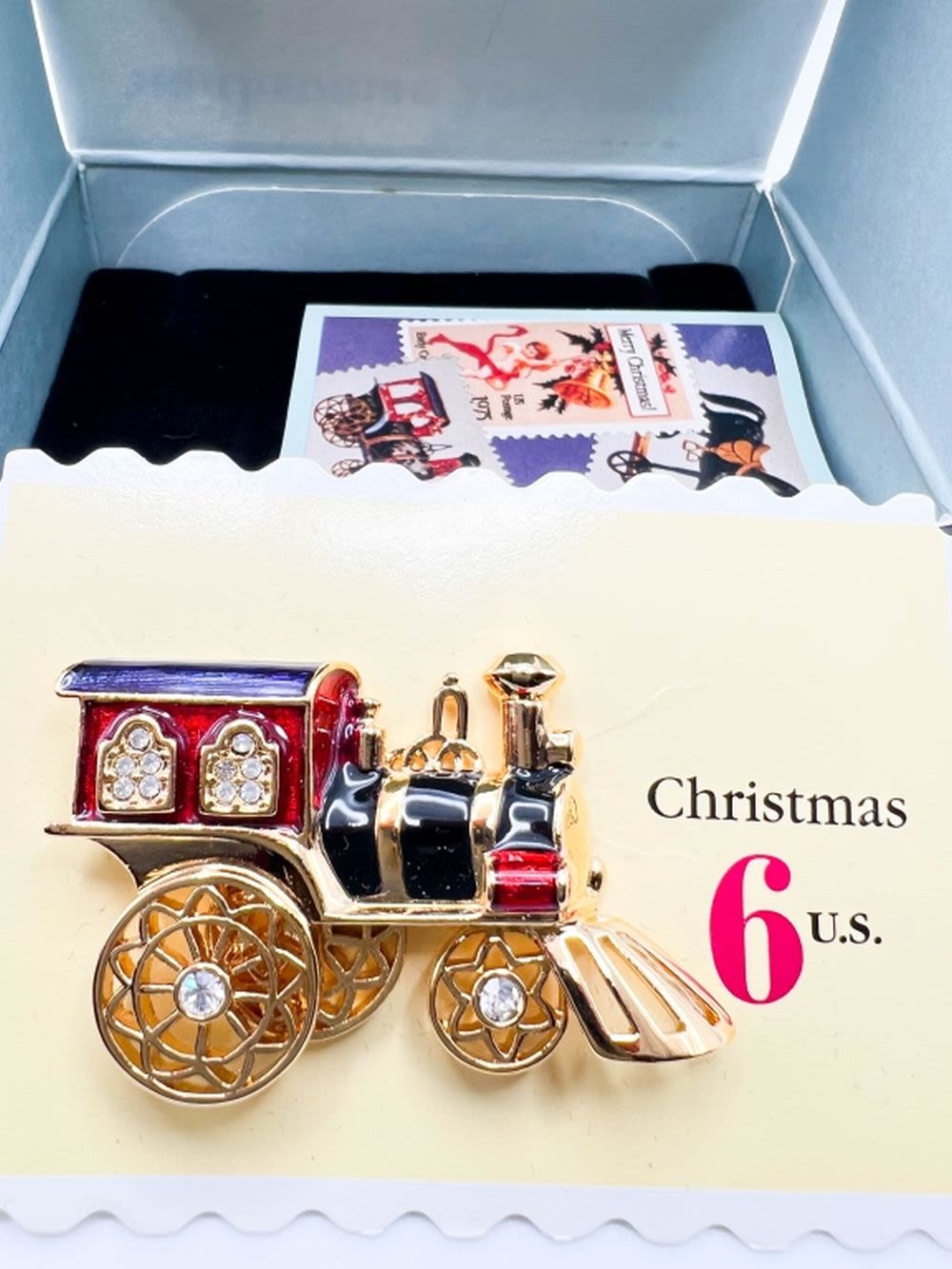 AVON SMITHSONIAN CHRISTMAS TRAIN BROOCH W CASE , LIKE NEW