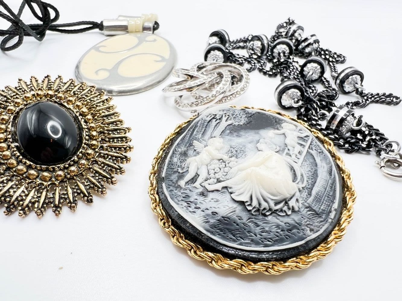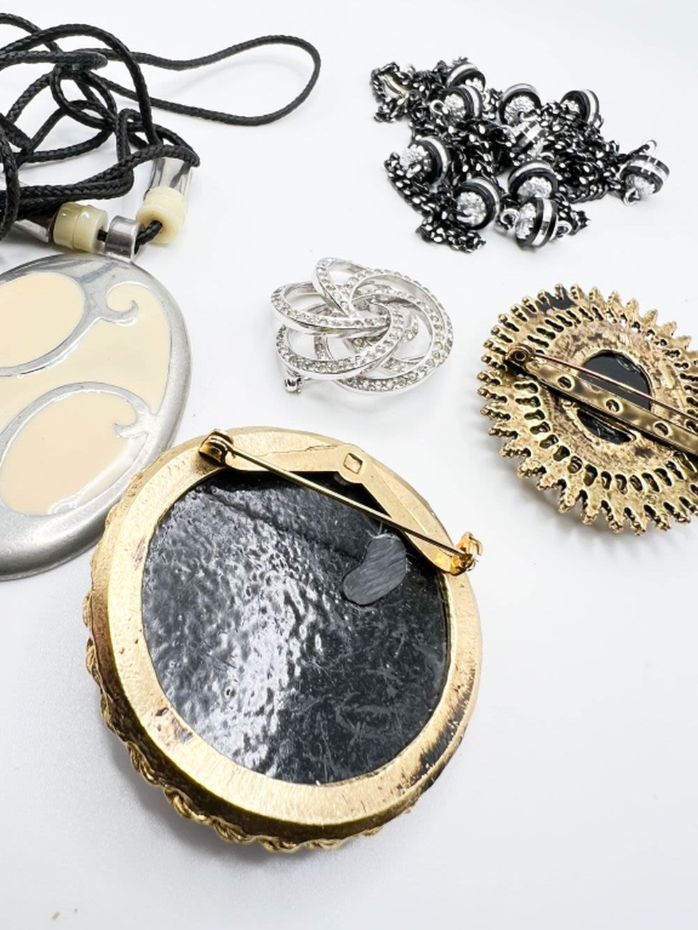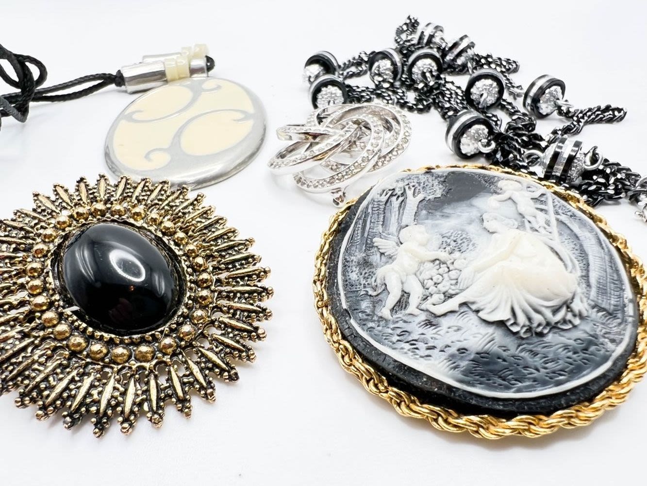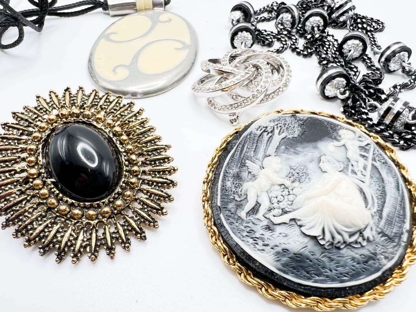 LG BLACK WAVY CAMEO STONE BROOCH AND MORE !