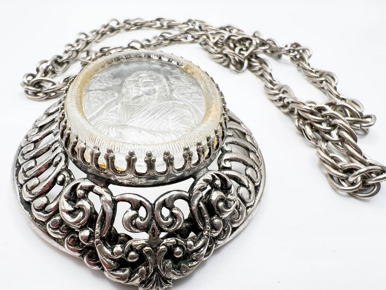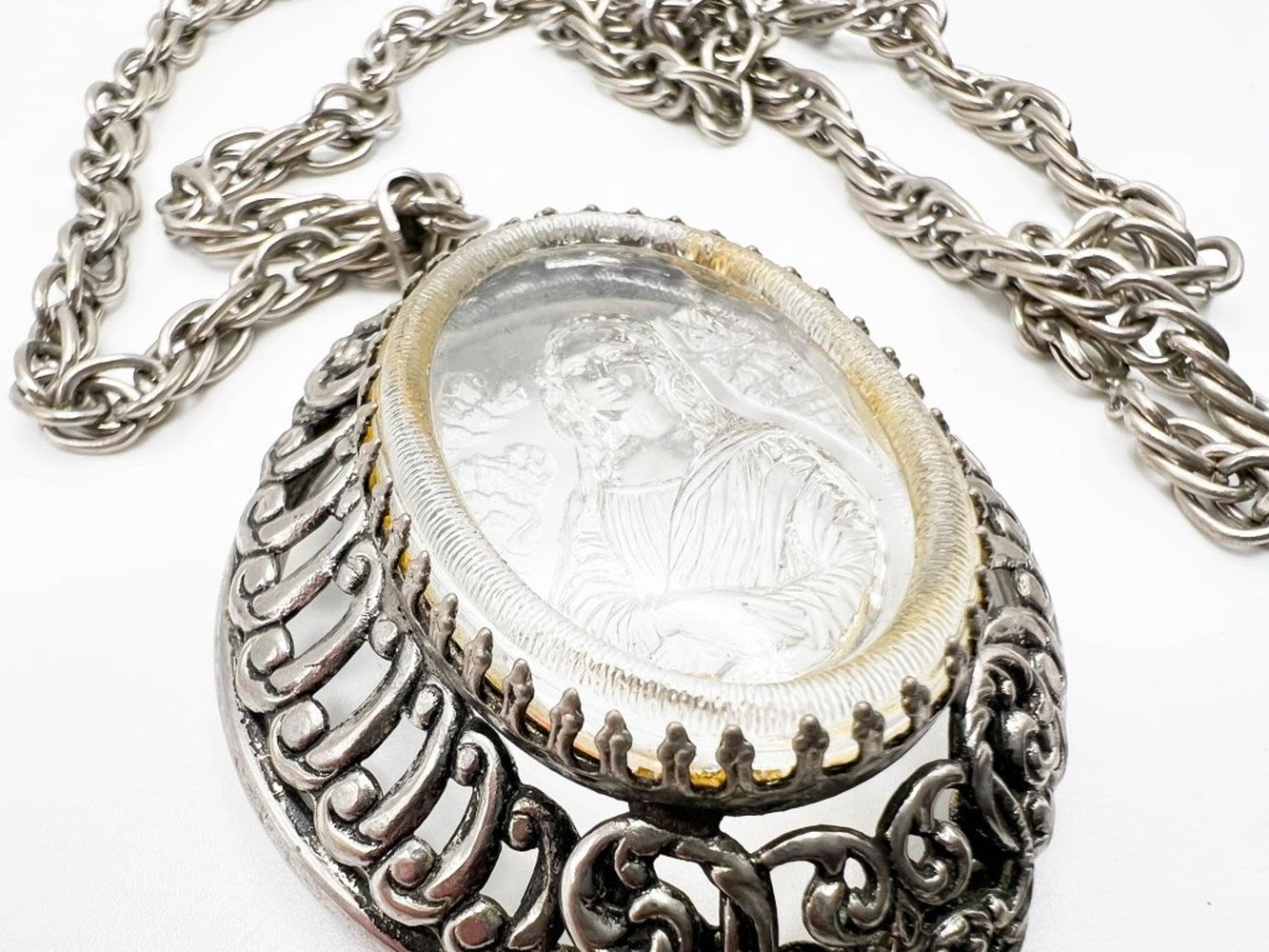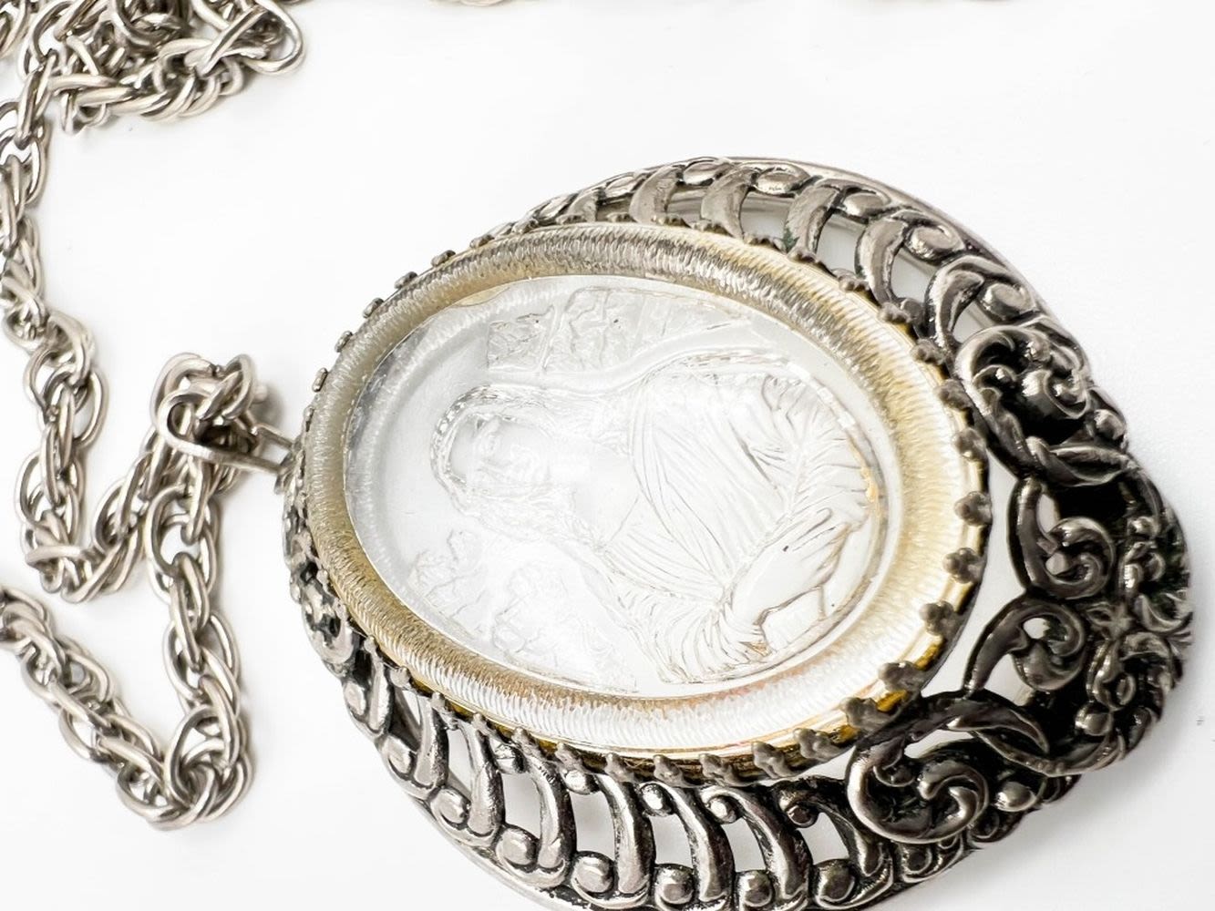 LG OVAL INTAGLIO GLASS NECKLACE WITH OVAL SCROLL FRAMEWORK