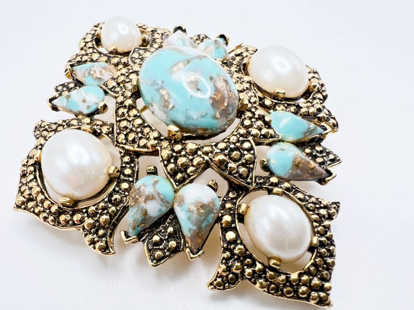 SARAH COVENTRY BROOCH , TURQUISE AND PEARL COLORS