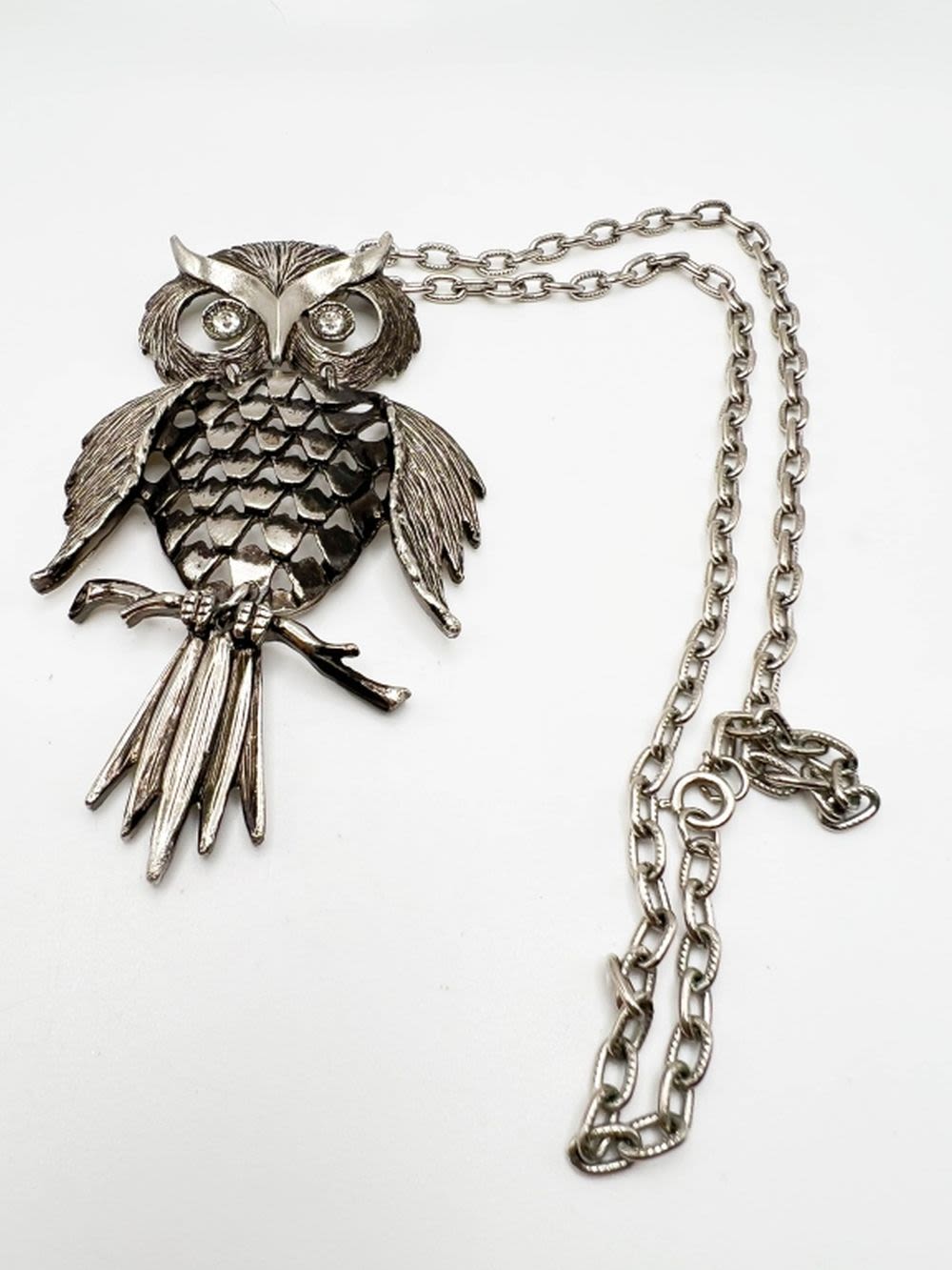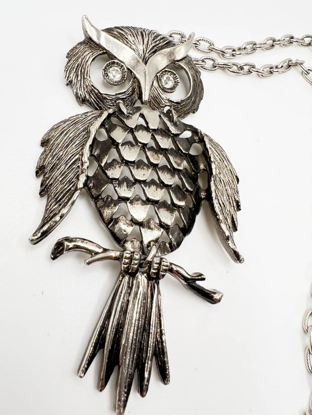 LG OWL NECKLACE WITH RHINESTONE EYES , MOVES