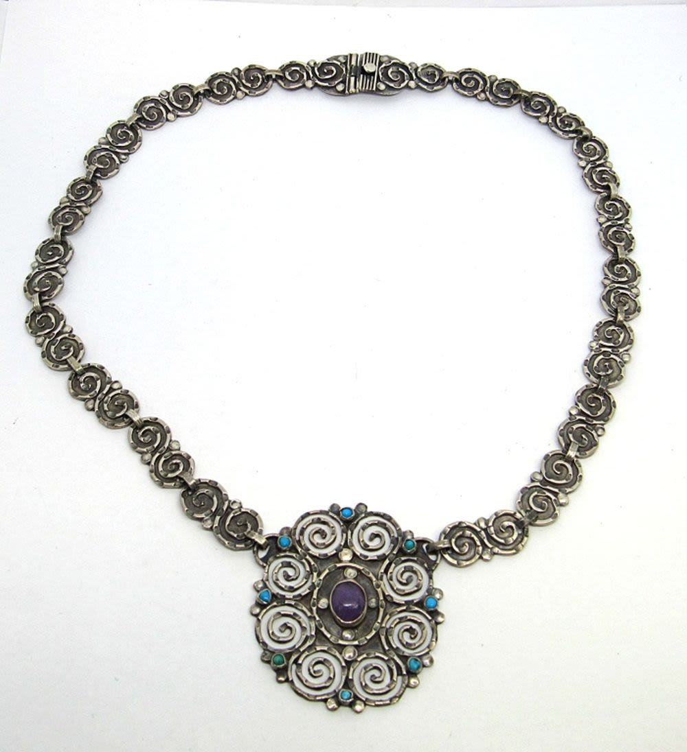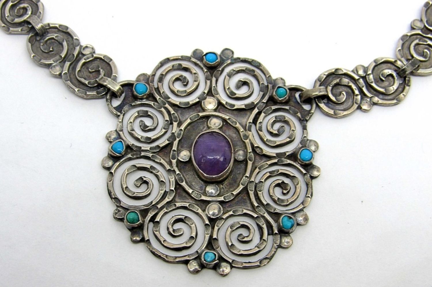 925 Amethyst & Turquoise Necklace – 20″ LONG – NICE CONDITION ( 32 dwt)