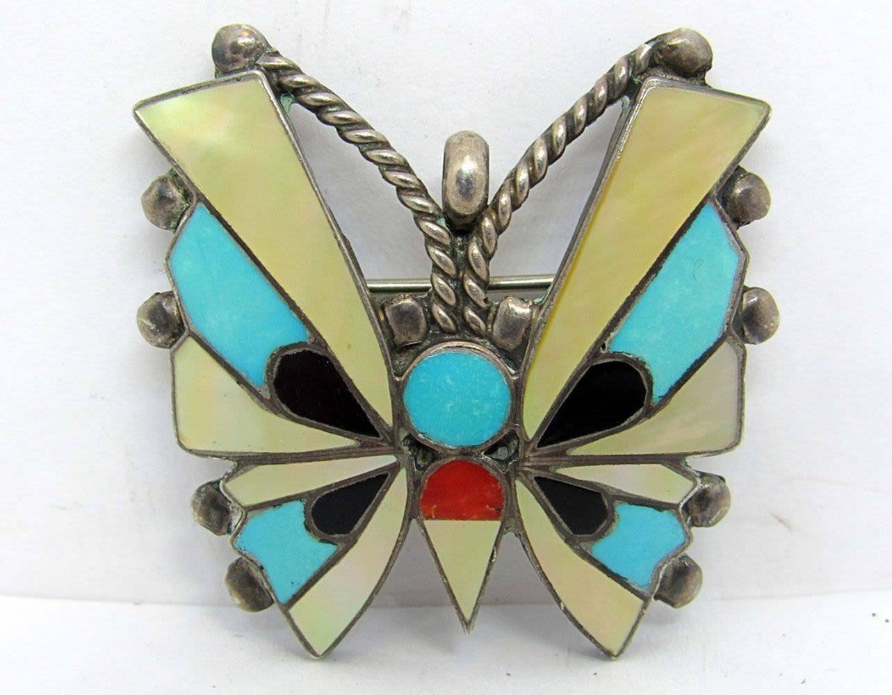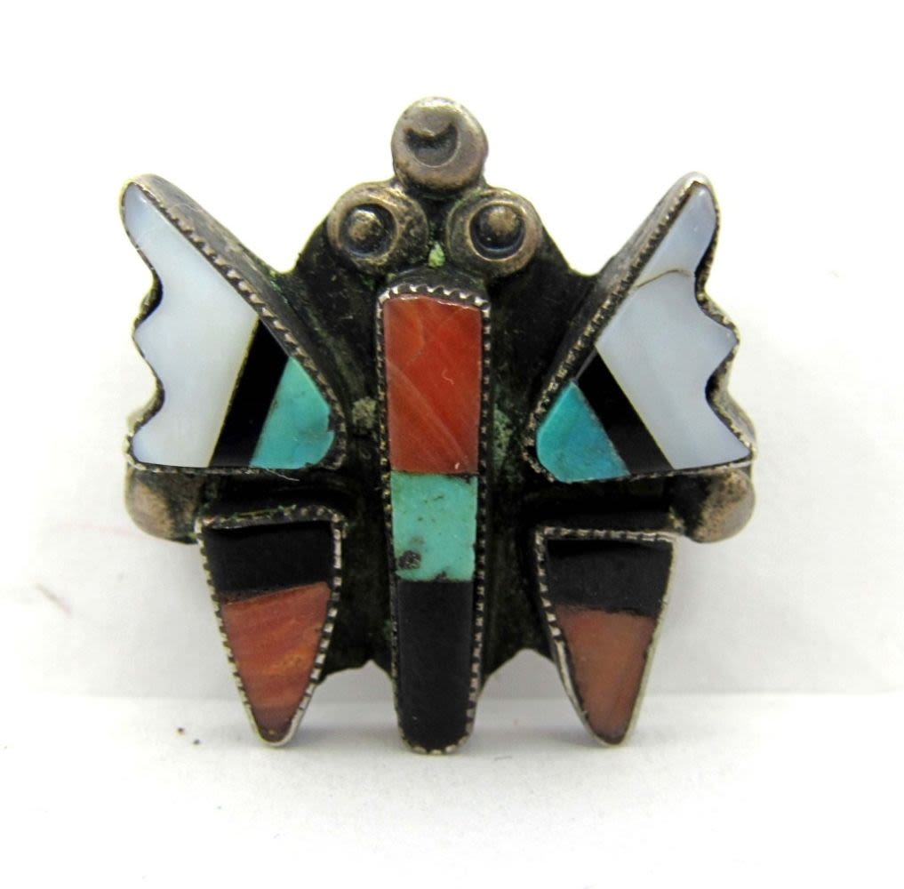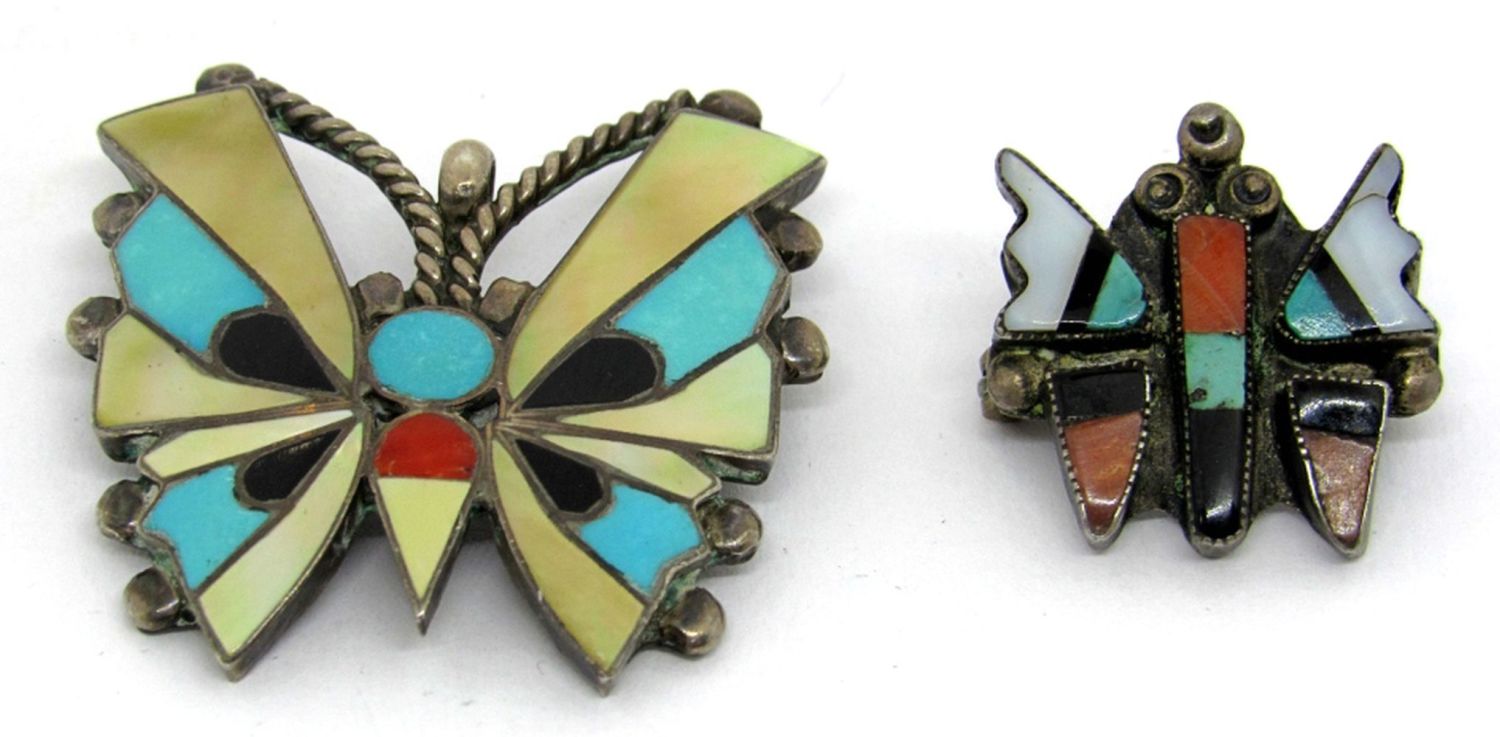 LARGE BUTTERFLY PIN/PENDANT ENGRAVED “R NE HA ZUNI NM” – SMALL ENGRAVED “MAP” (7 dwt)