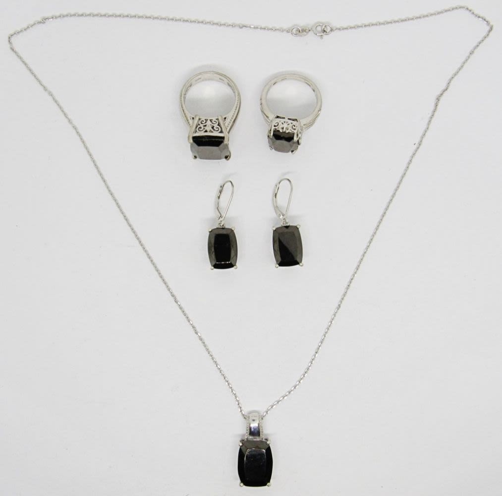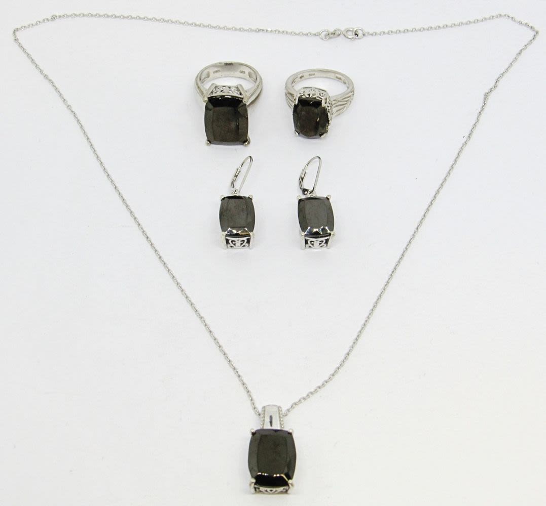 (2) RINGS SIZE 7, PAIR EARRINGS, NECKLACE & PENDANT – (17 dwt)