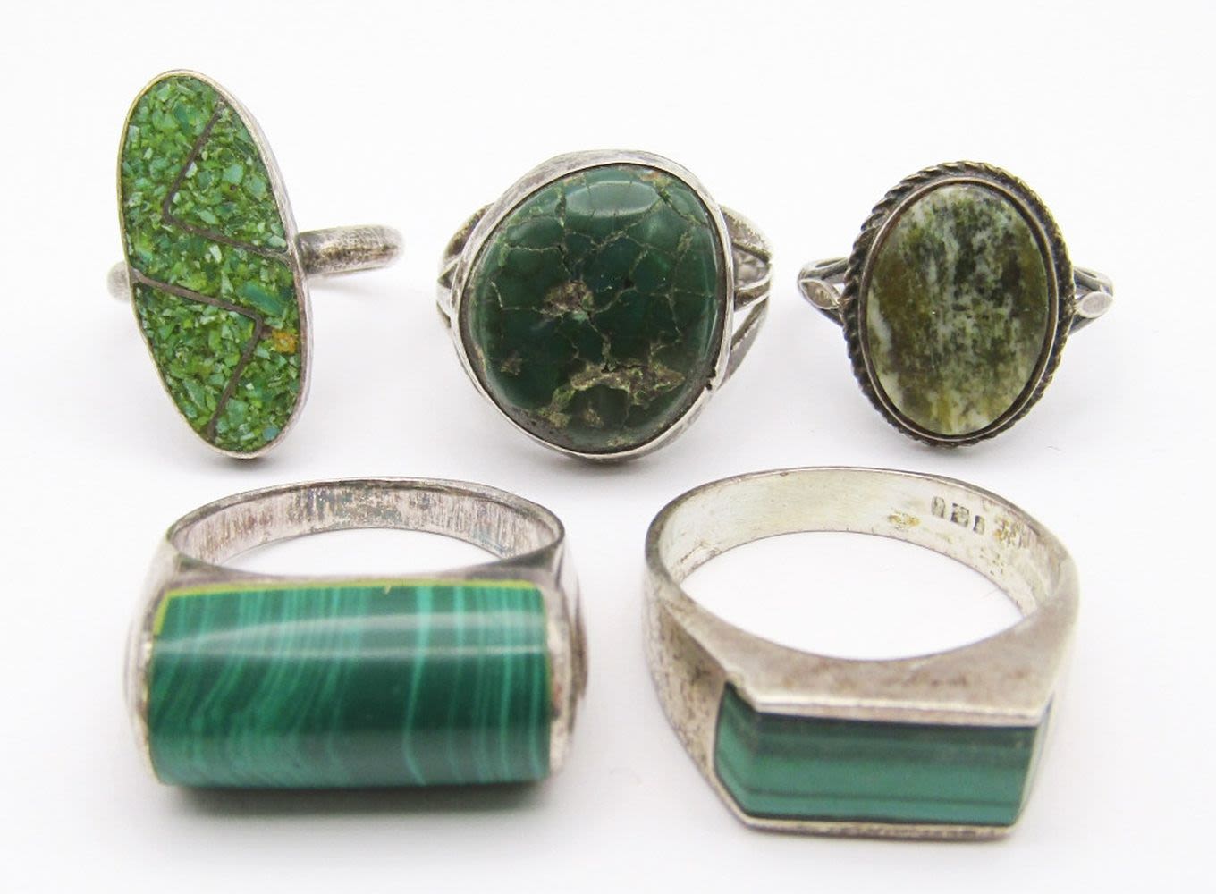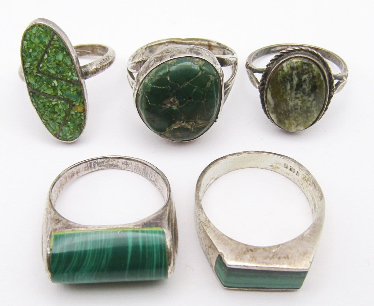 VARIOUS NATURAL GREEN STONES – MOSTLY SIZES 8-9 (2) SIZE 5/6 – 15 dwt)