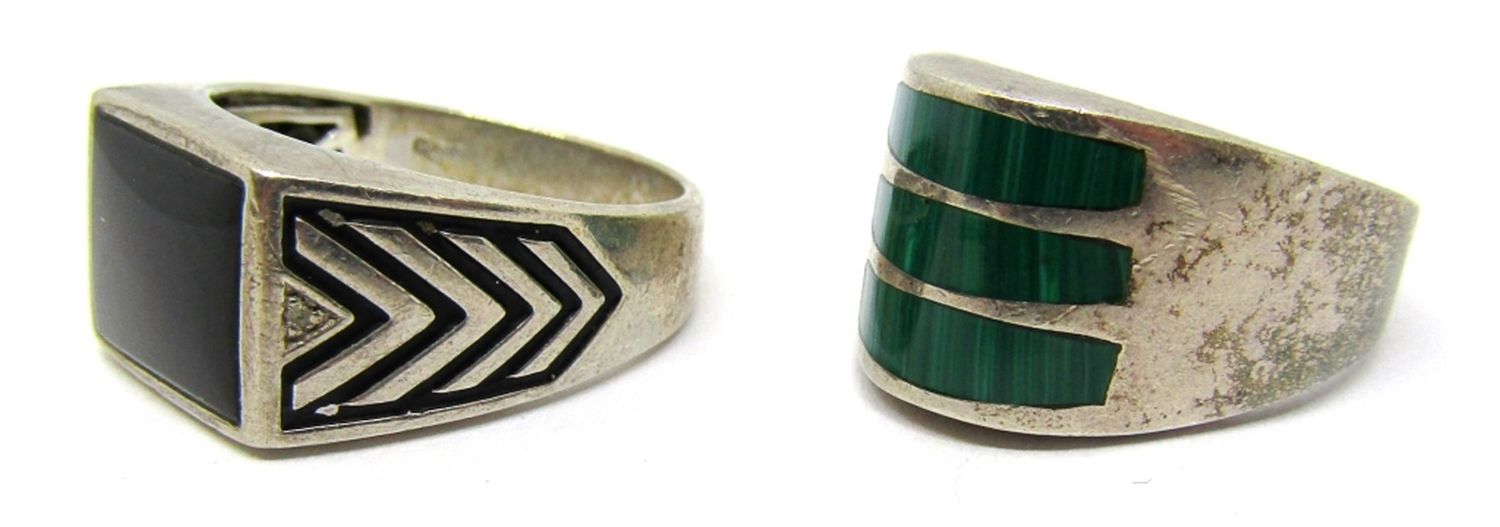 GREEN MALACHITE SIZE 10, “SHR” BLACK ONYX SIZE 11 ( 13 dwt)