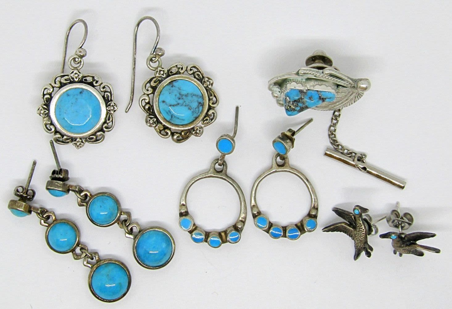 (4) PAIR EARRINGS with one being WHITNEY KELLY plus TIE CLASP ( 20 dwt)