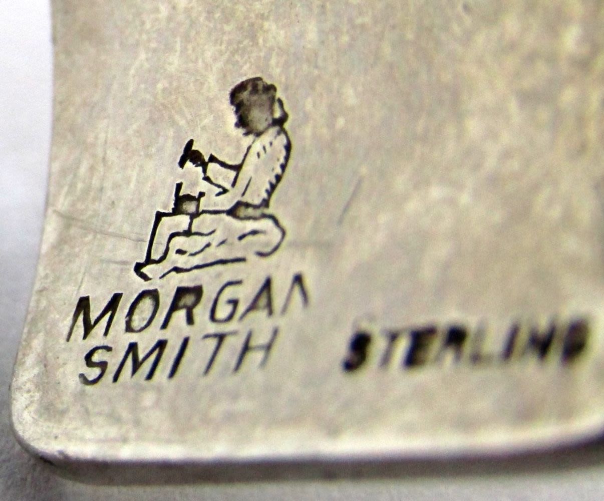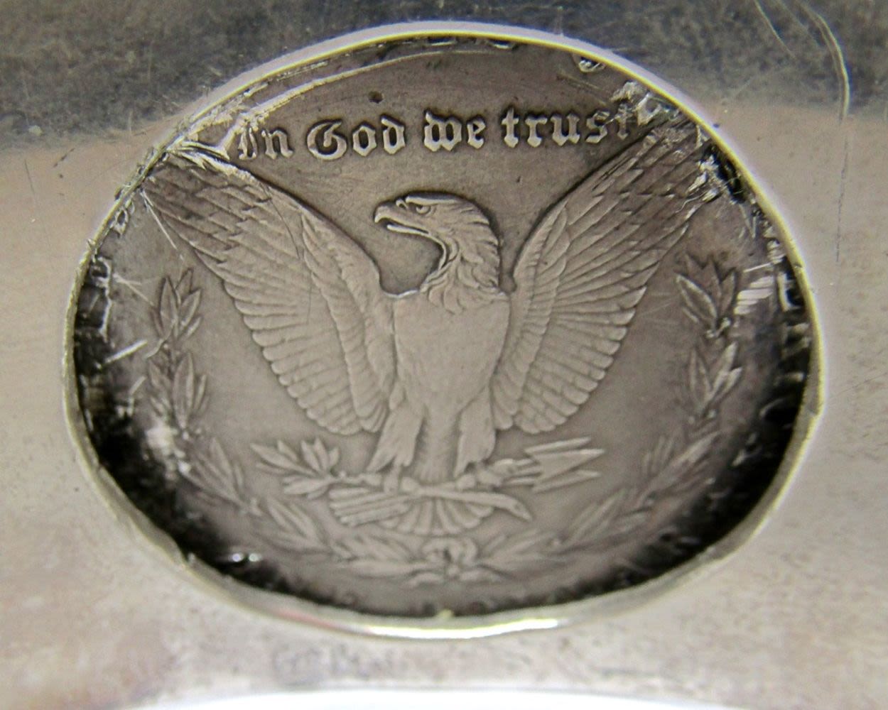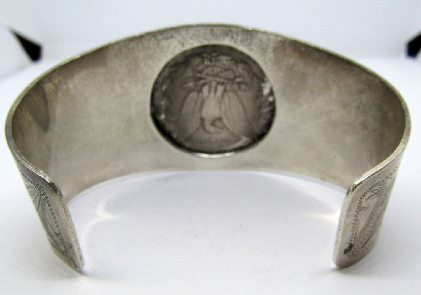 1902 MORGAN SILVER DOLLAR in THICK STERLING CUFF BRACELET – STAMPED MORGAN SMITH – 7 1/4″ including GAP ( 50 dwt)