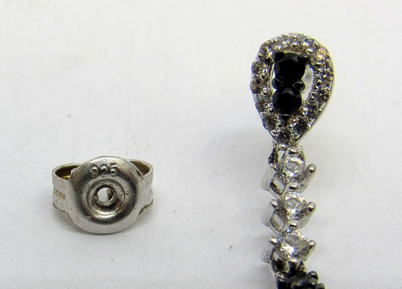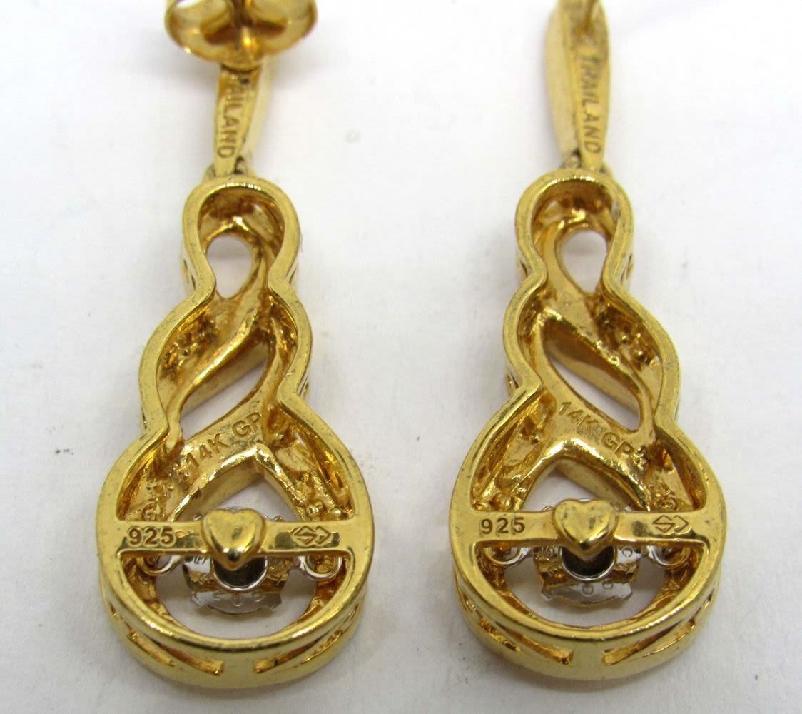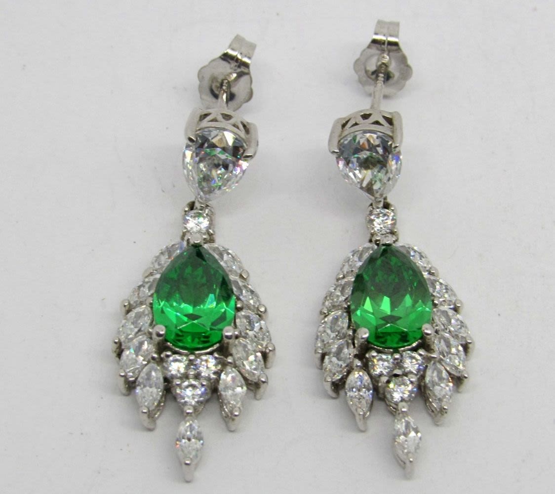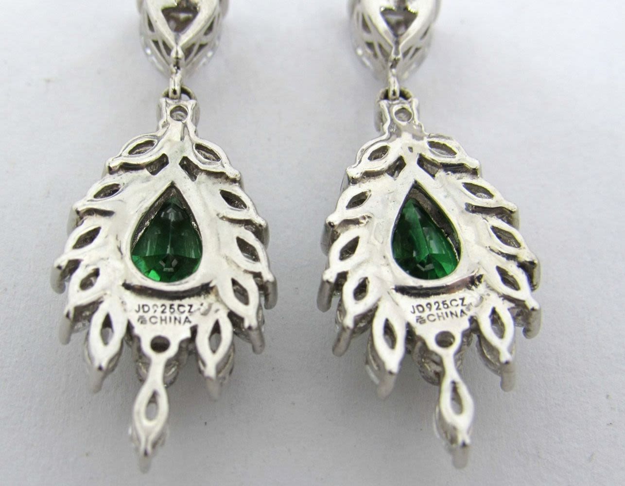 TEAR DROP BLACK SPARKLY STONE stamped DK 925, GOLD TONED 14k PLATED, GREEN CENTER STONE JD 925 CZ (16 dwt)