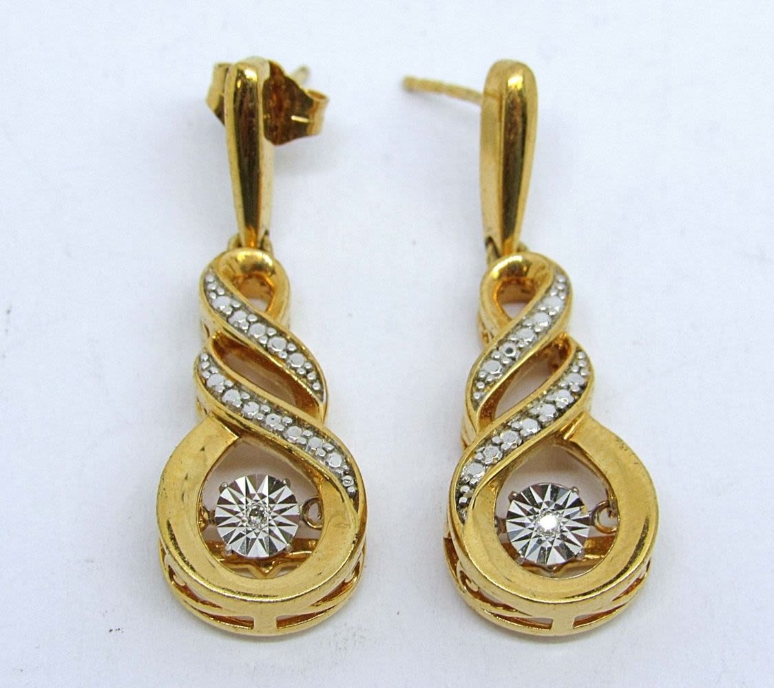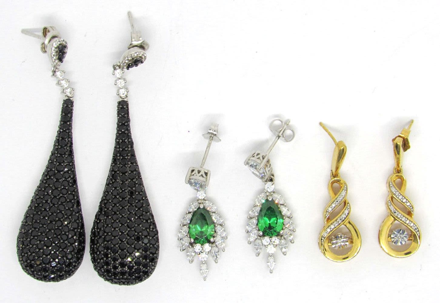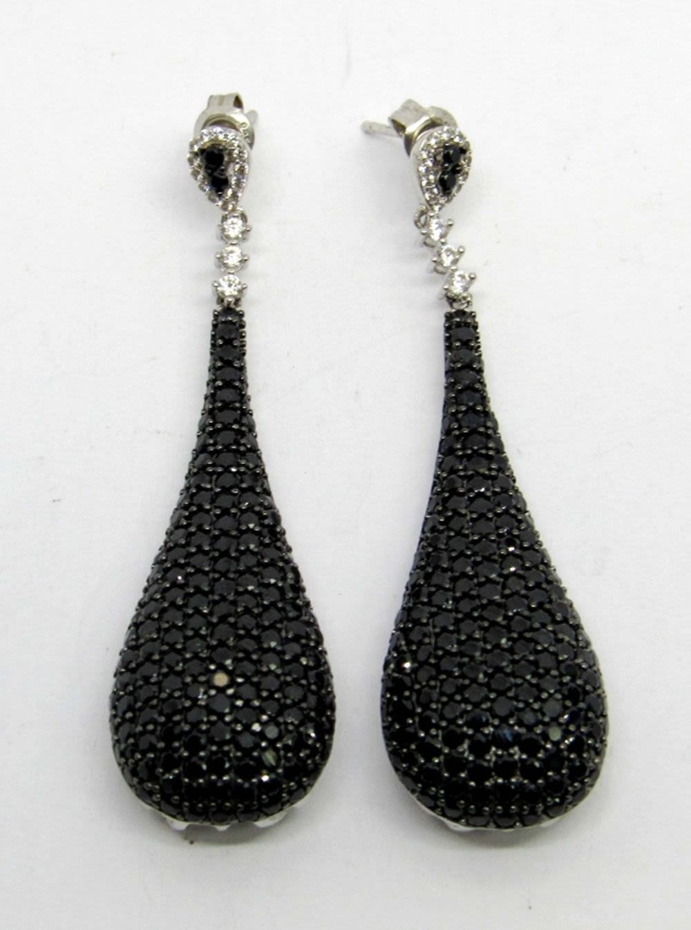 TEAR DROP BLACK SPARKLY STONE stamped DK 925, GOLD TONED 14k PLATED, GREEN CENTER STONE JD 925 CZ (16 dwt)