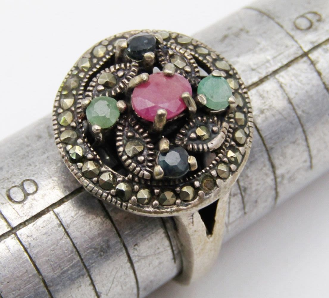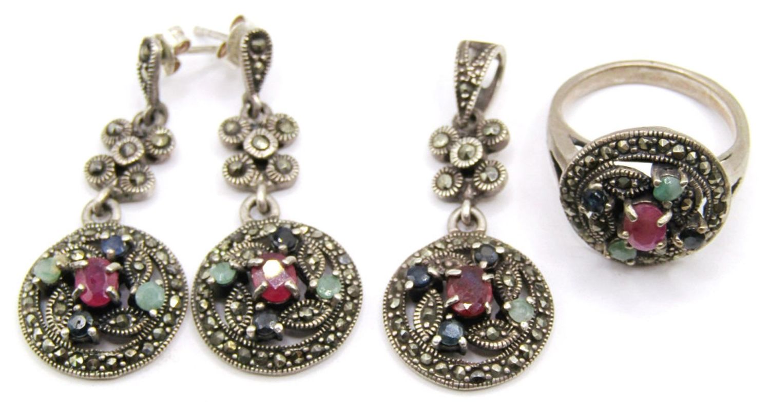 RING SIZE 7.5, EAERRING PIERCED & PENDANT with MARCASITE ( 11 dwt)