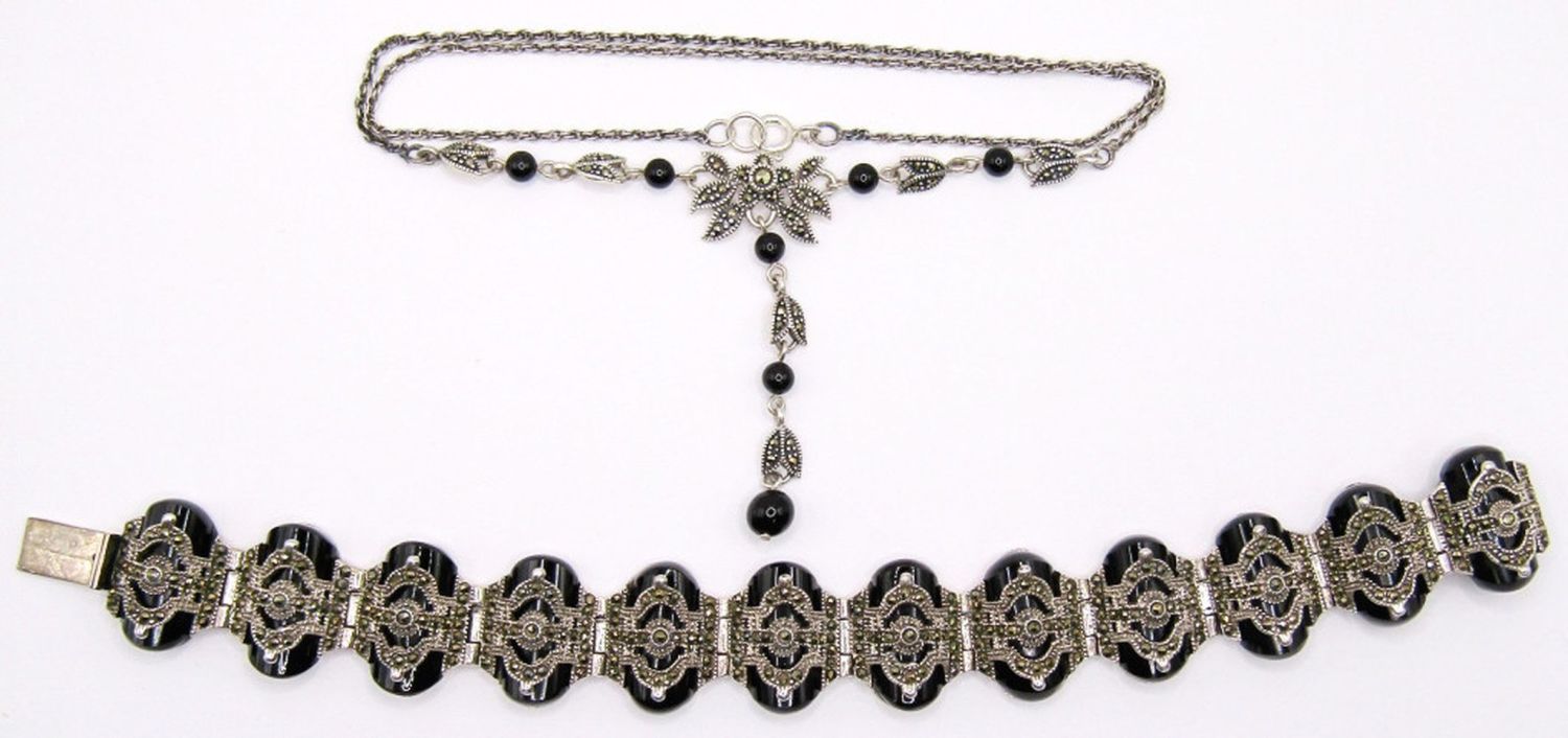 STUNNING PIECE 7 1/4″ LONG plus BEAUTIFUL DANTY DRAGONFLY MARCASITE NECKLACE marked THIALAND ( 43 dwt)