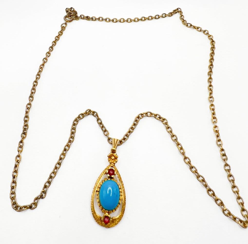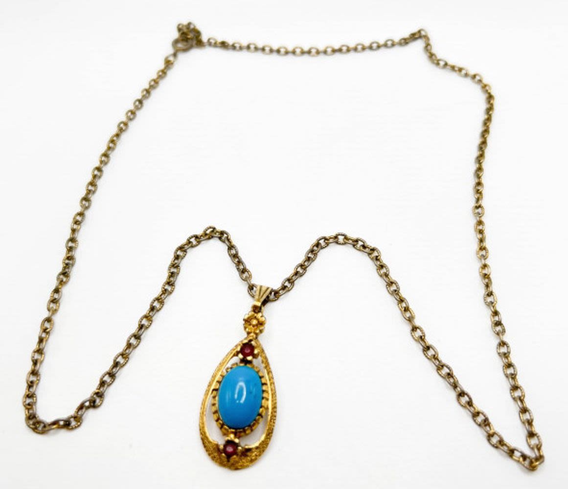 CELEBRITY SIGNED NECKLACE WITH TURQUISE STONE PENDANT