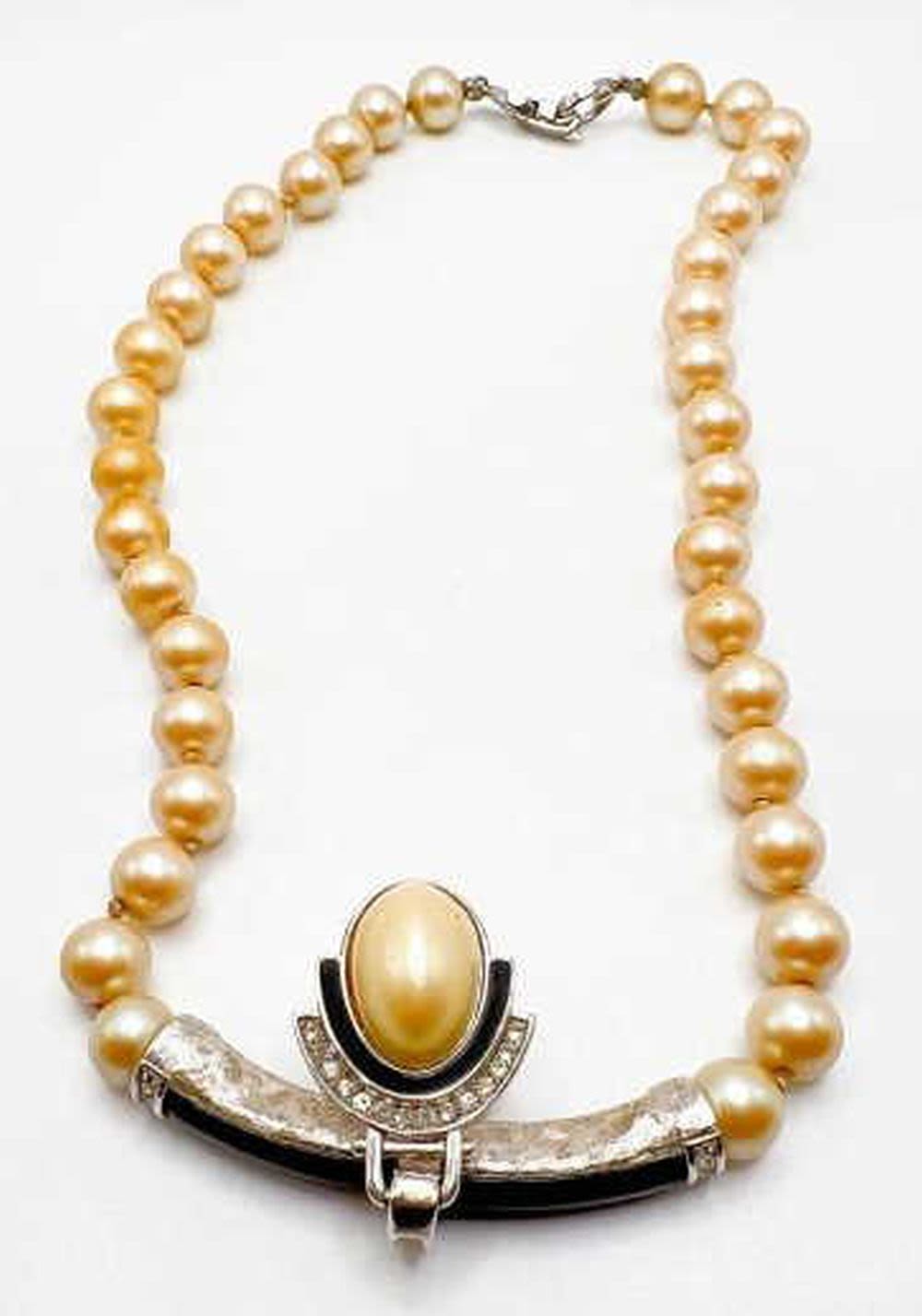 W. FAUX PEARL, BLACK, CLEAR RHINESTONES