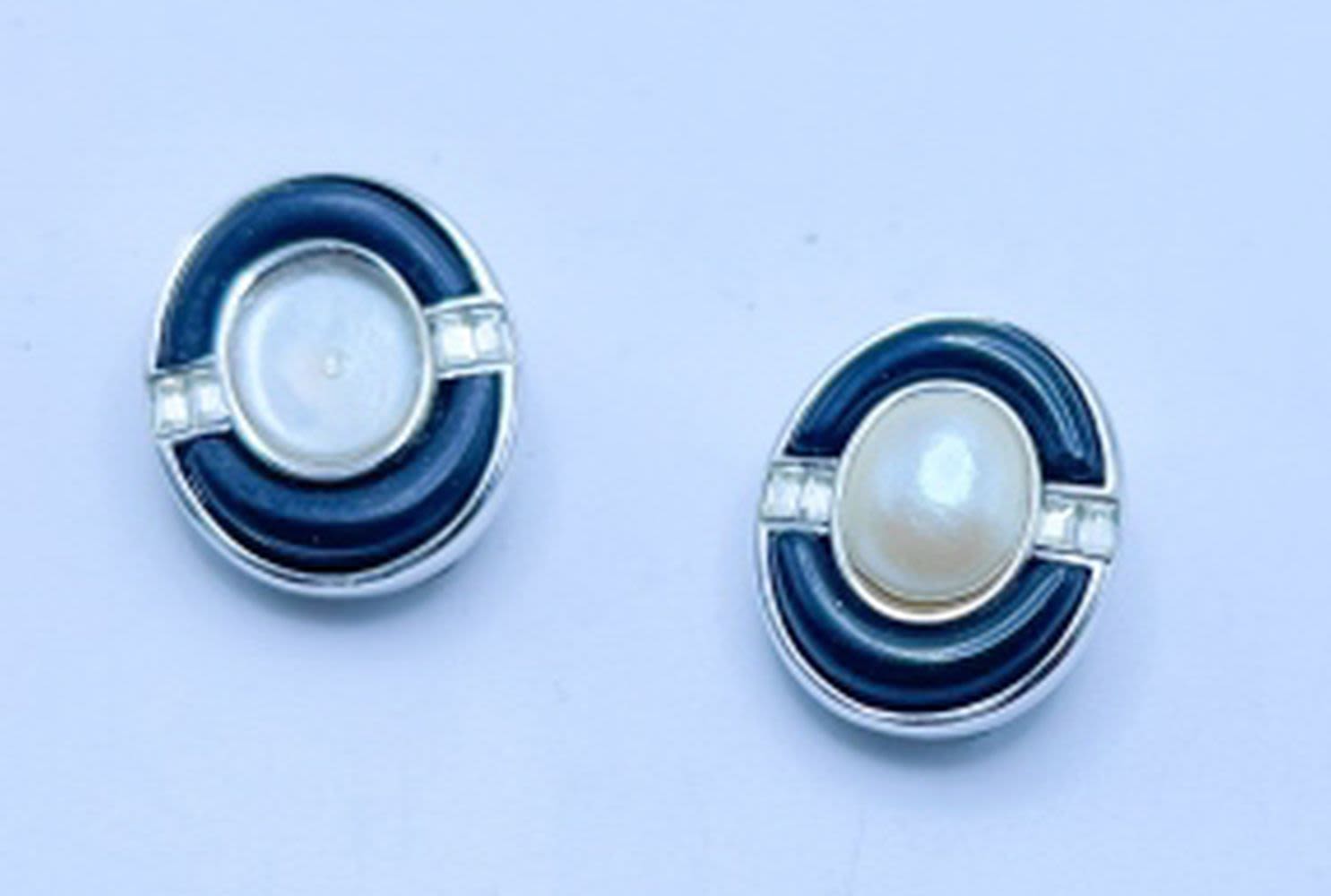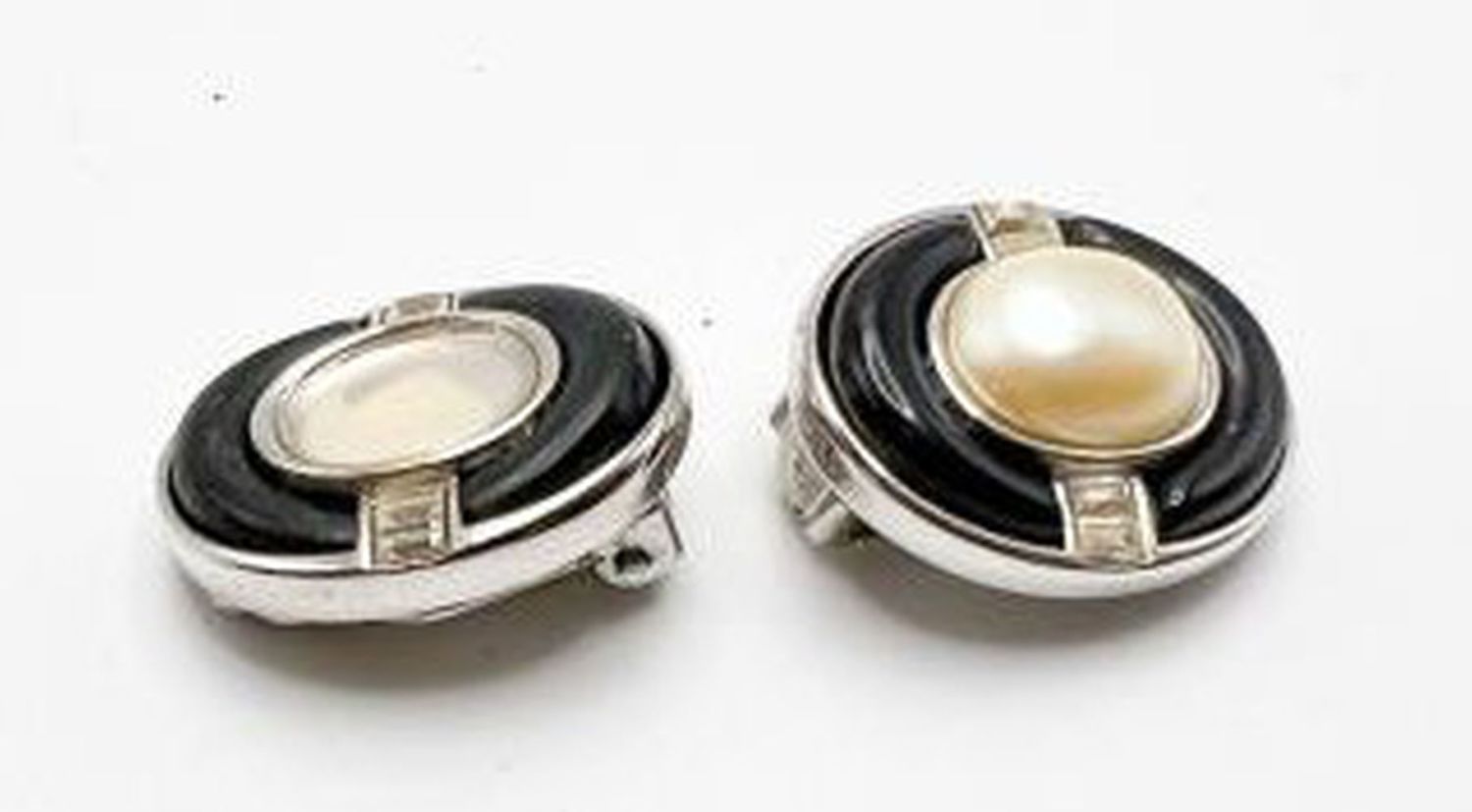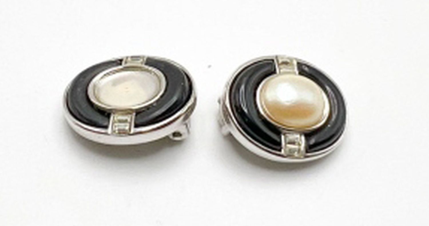 CLIP ON BLACK WITH RHINESTONES AND FAUX PEARL SILVER TONE