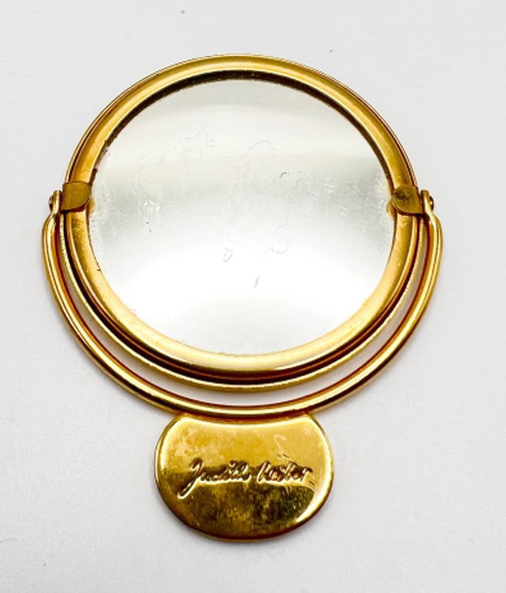 MADE IN ITALY, BEAUTIFUL LEIBER MAKEUP COSMETIC MIRROR IN GOLD TONE, GREAT SIZE FOR TRAVEL OR PURSE