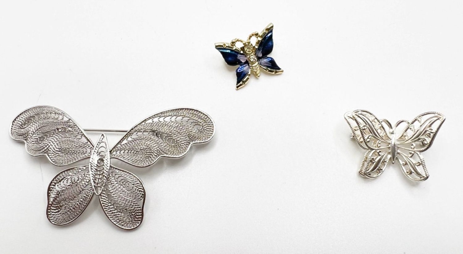 SHINY SILVER TONE, BLUE PAINTED ENAMEL WITH RHINESTONES