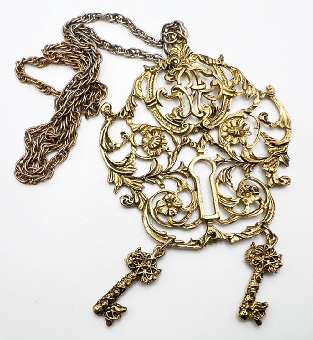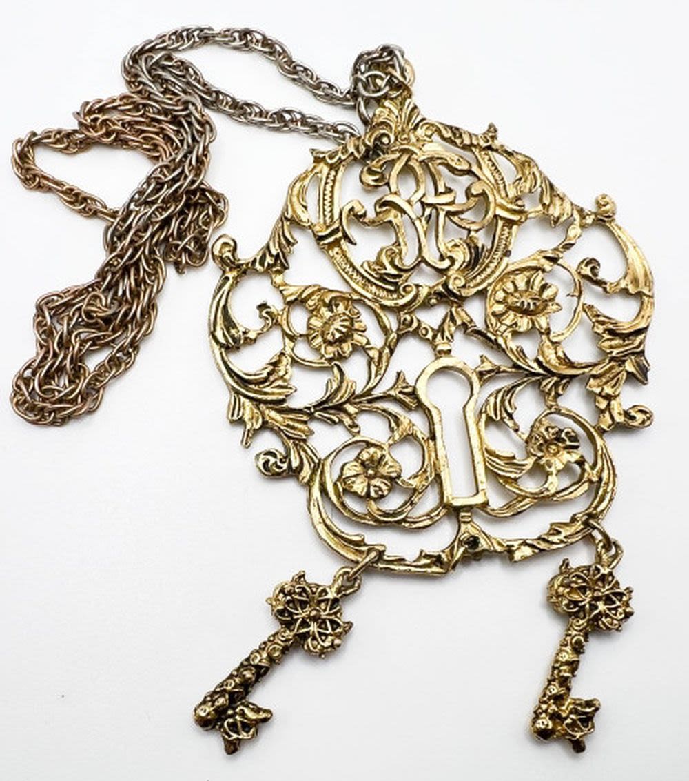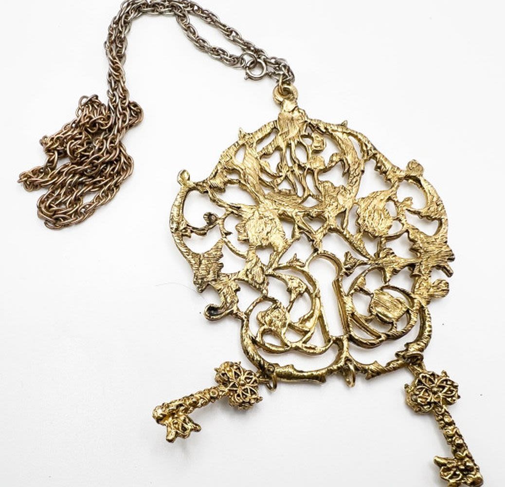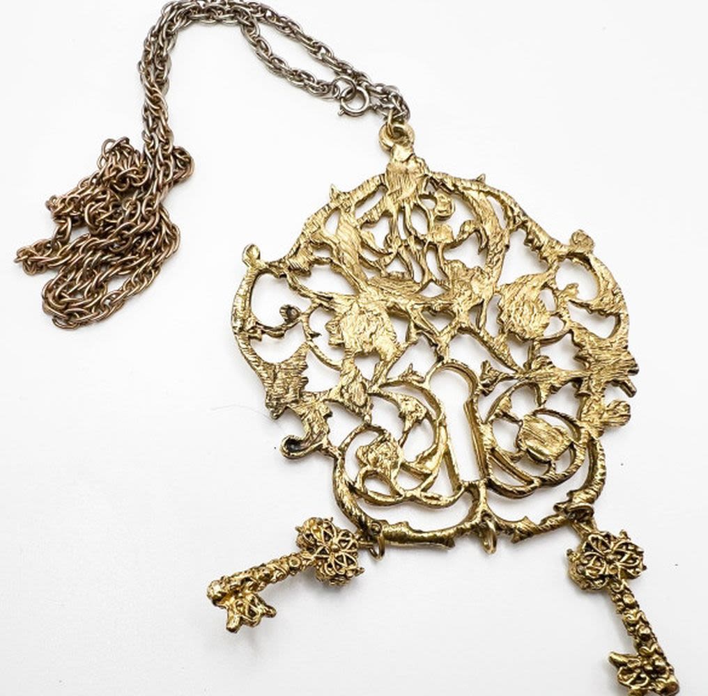 BOLD FILIGREE STYLE PENDANT NECKLACE , 4″ X 4″ APP SIZE PENDANT , NICE