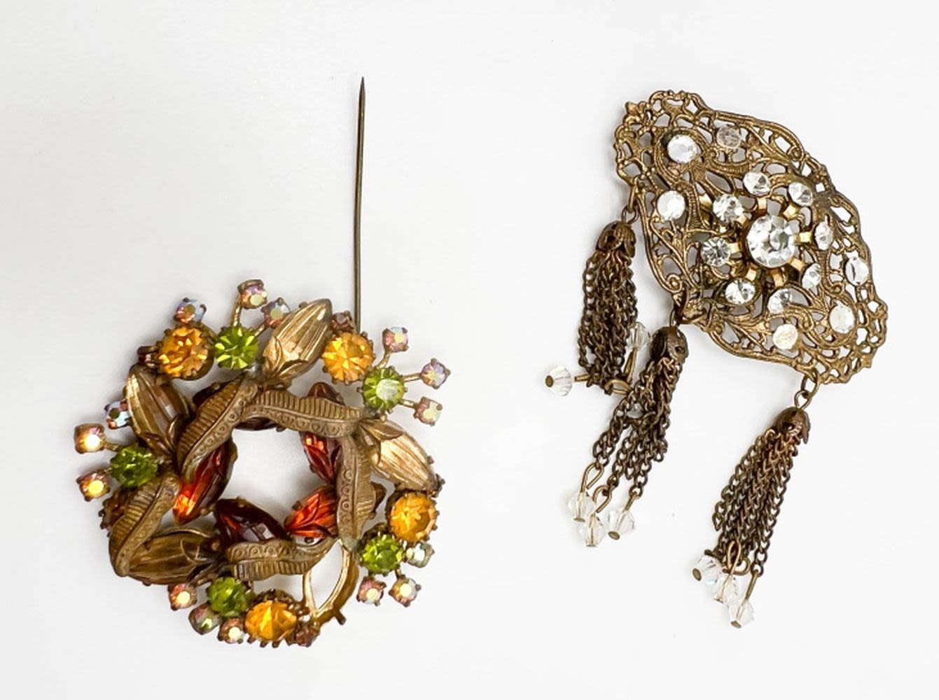 1- COLOR STONE ORANGE, AMBER RED GREEN, ONE CLEAR STONE W DANGLES