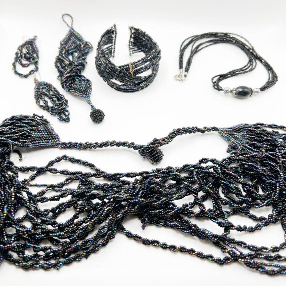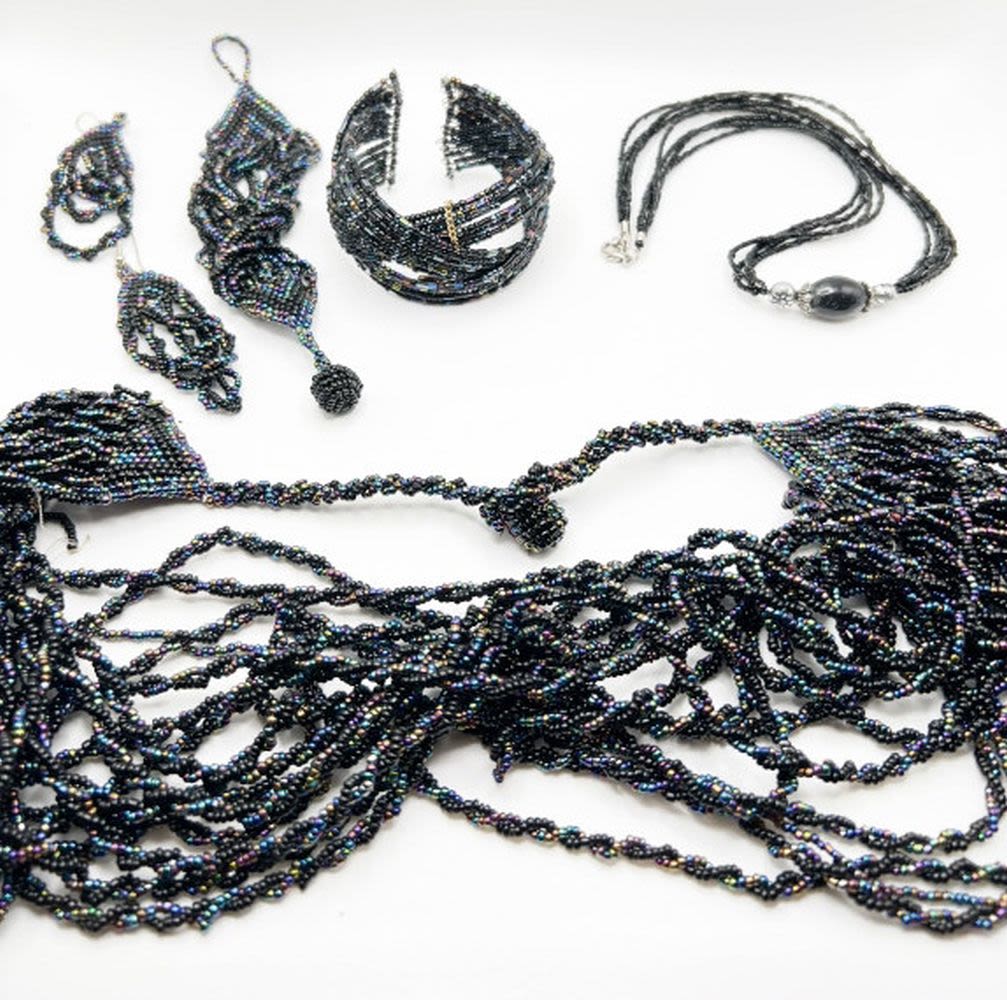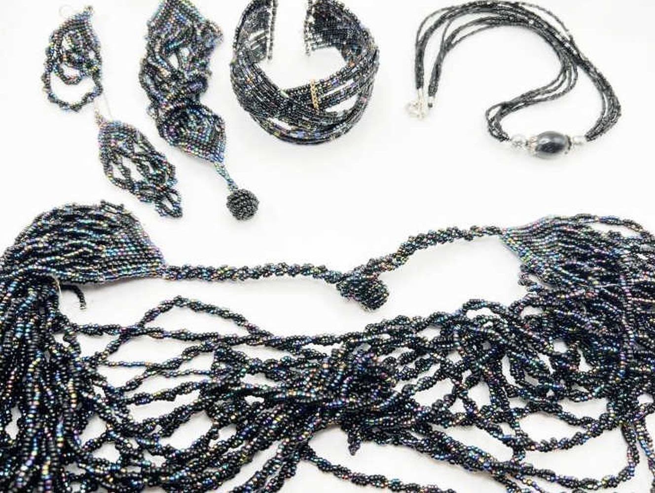 LARGE MMUTIPLE STRAND BEAD NECKLACE AND EARRINGS BID TODAY!