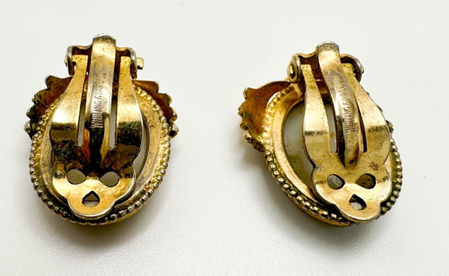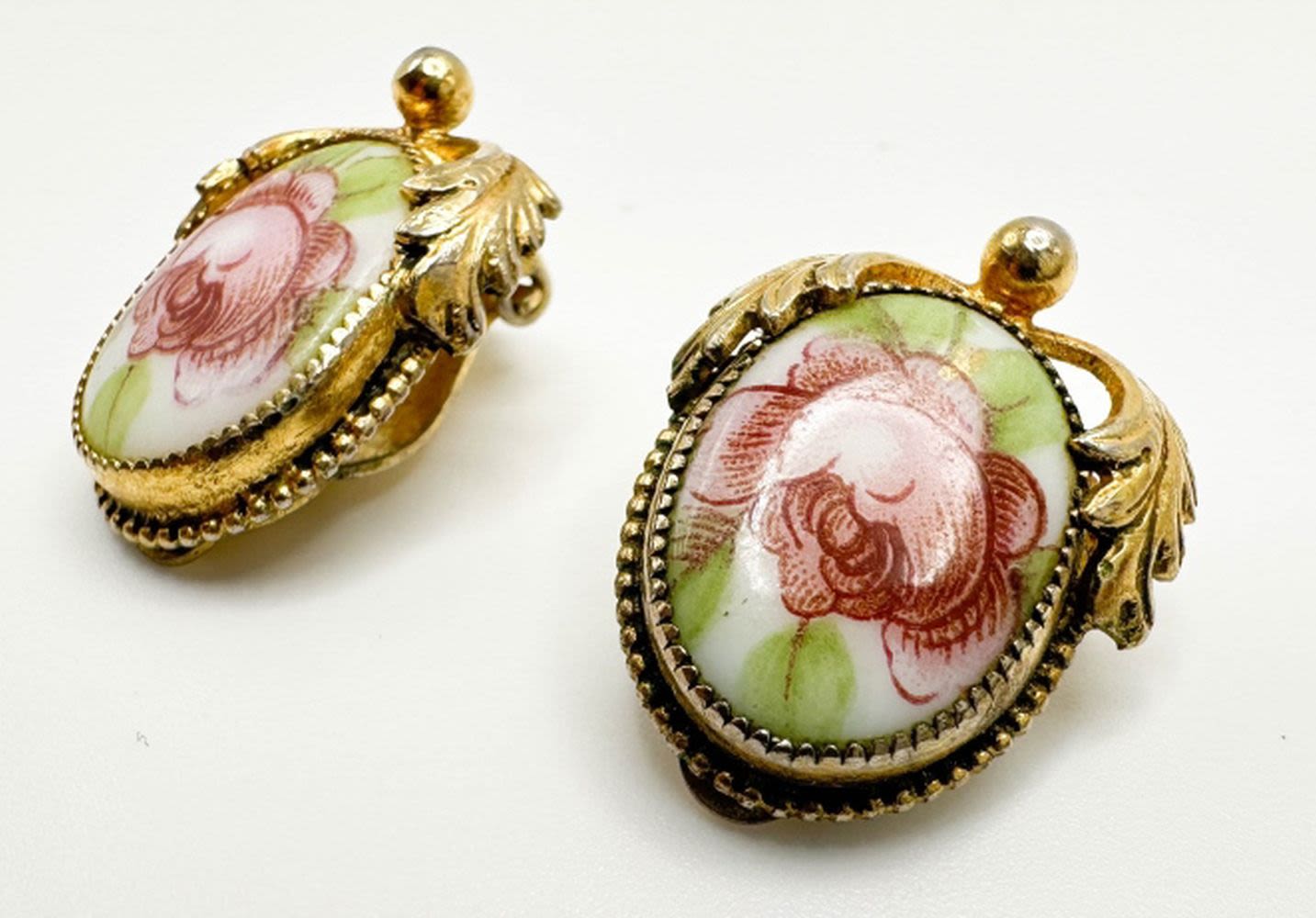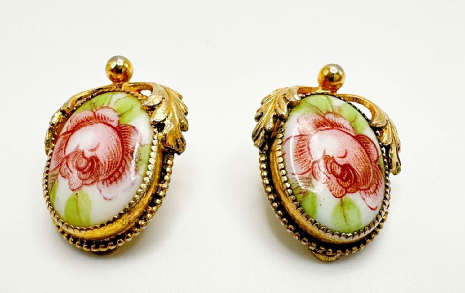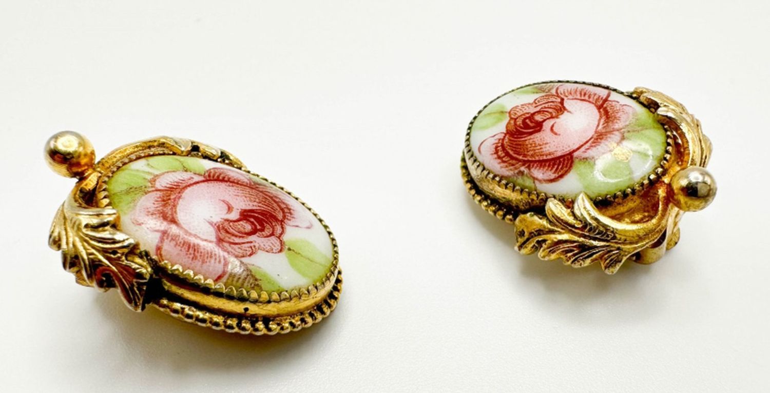 AMAZING WHITING DAVIS FLORAL ROSES CAMEO EARRINGS SET, VINTAGE FINE WHITING DAVIS EARRINGS