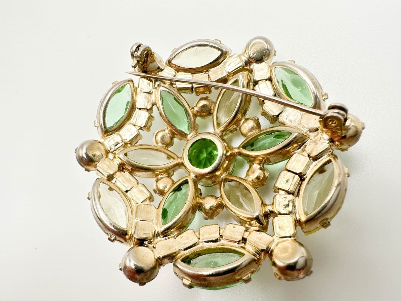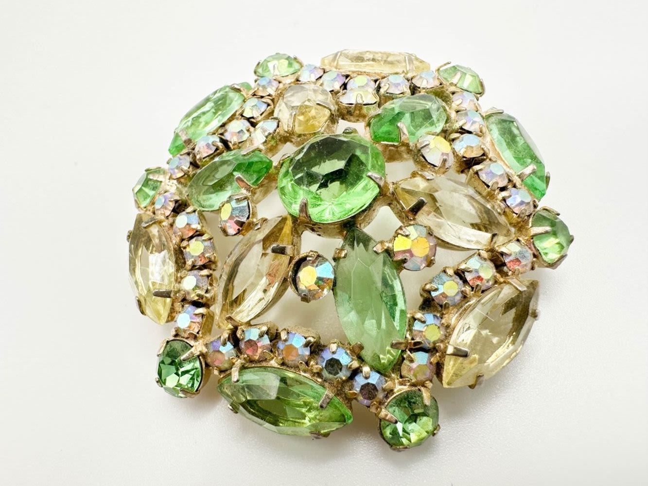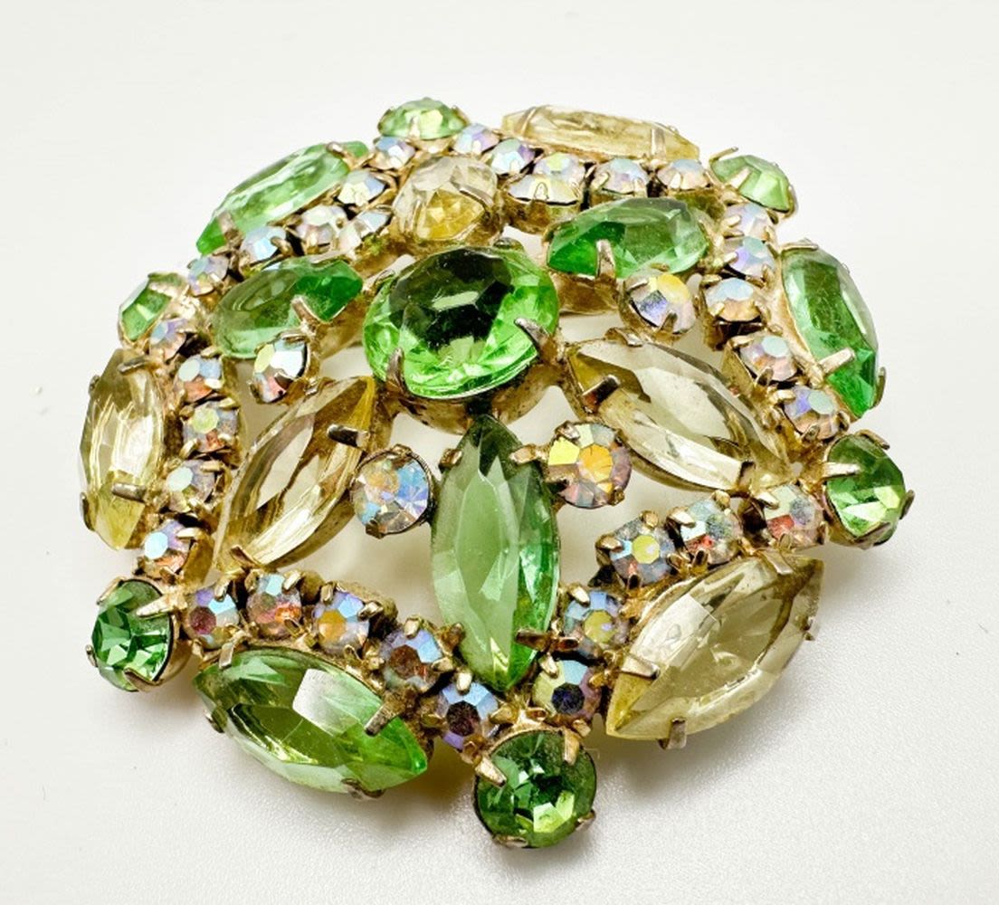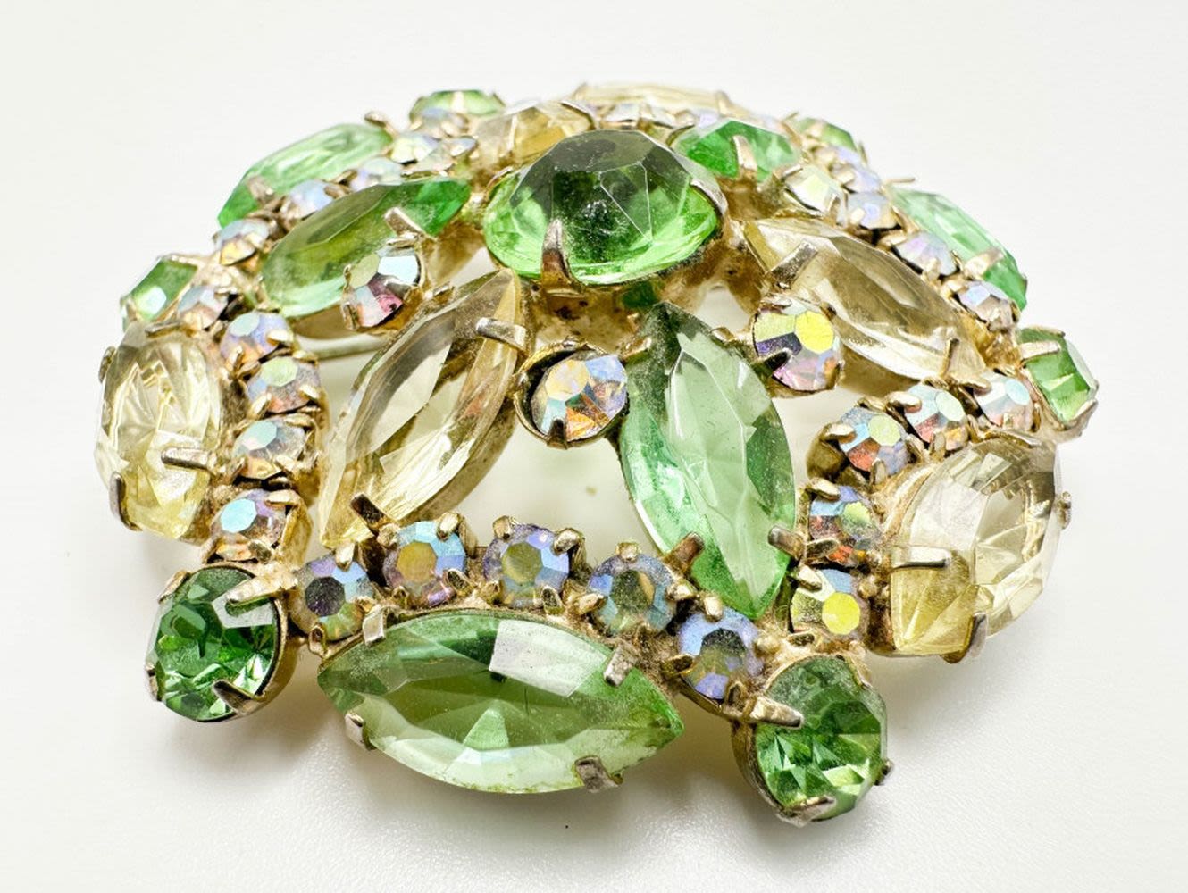 AMAZING AURORA AND GREEN STONE NICE LARGE SIZE BROOCH WITH CLEAR STONES FROM REVERSE SIDE, ABSOLUTE GORGEOUS !