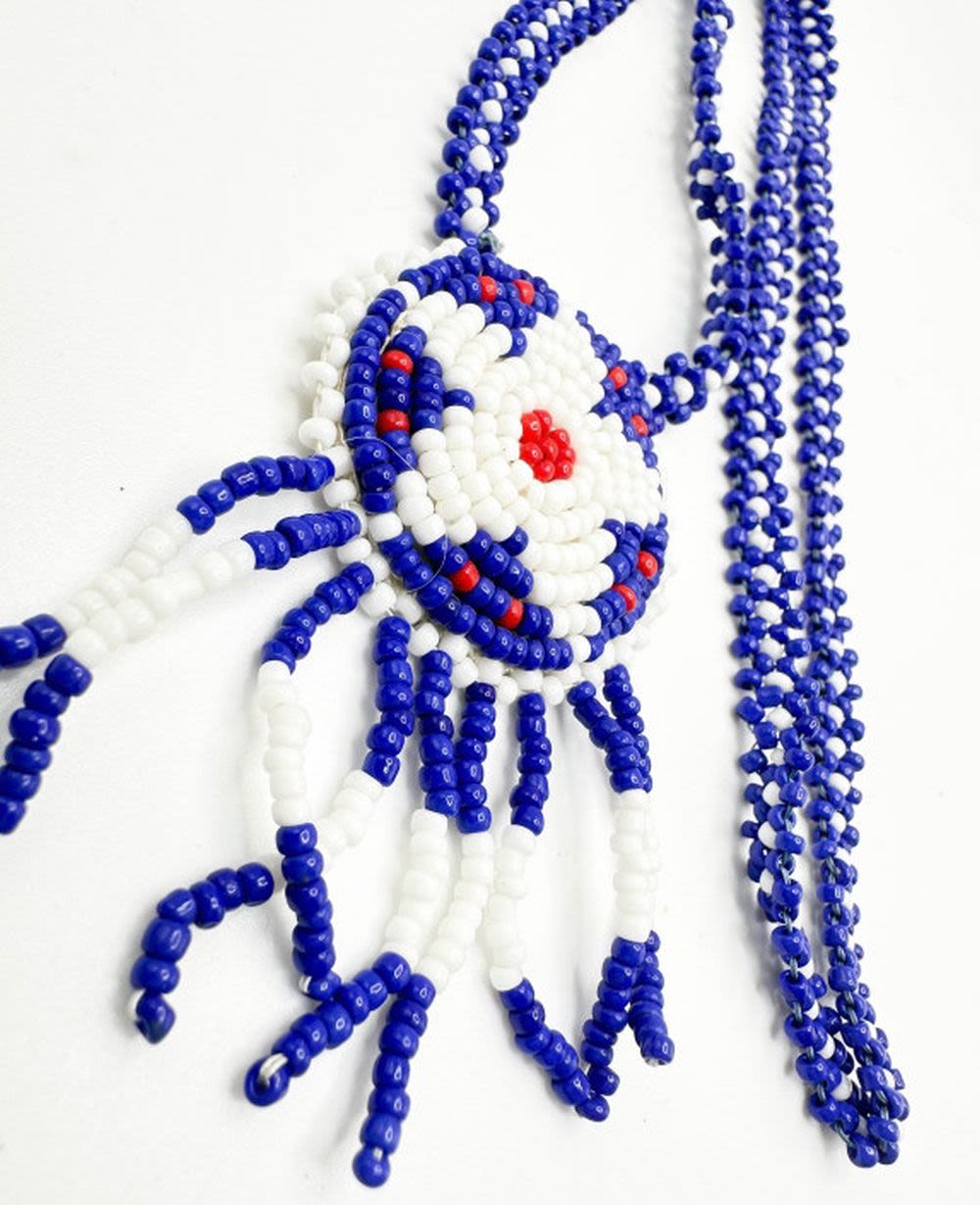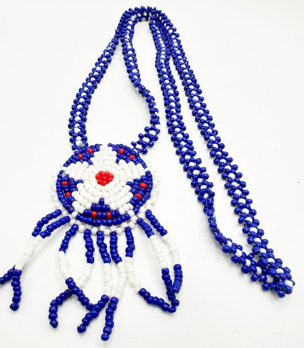 BEAUTIFUL RED WHITE BLUE STAR BEAD WORK NECKLACE