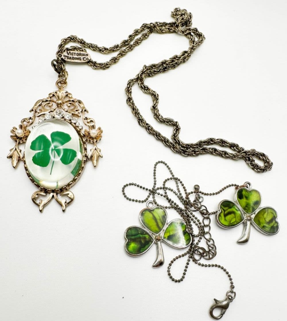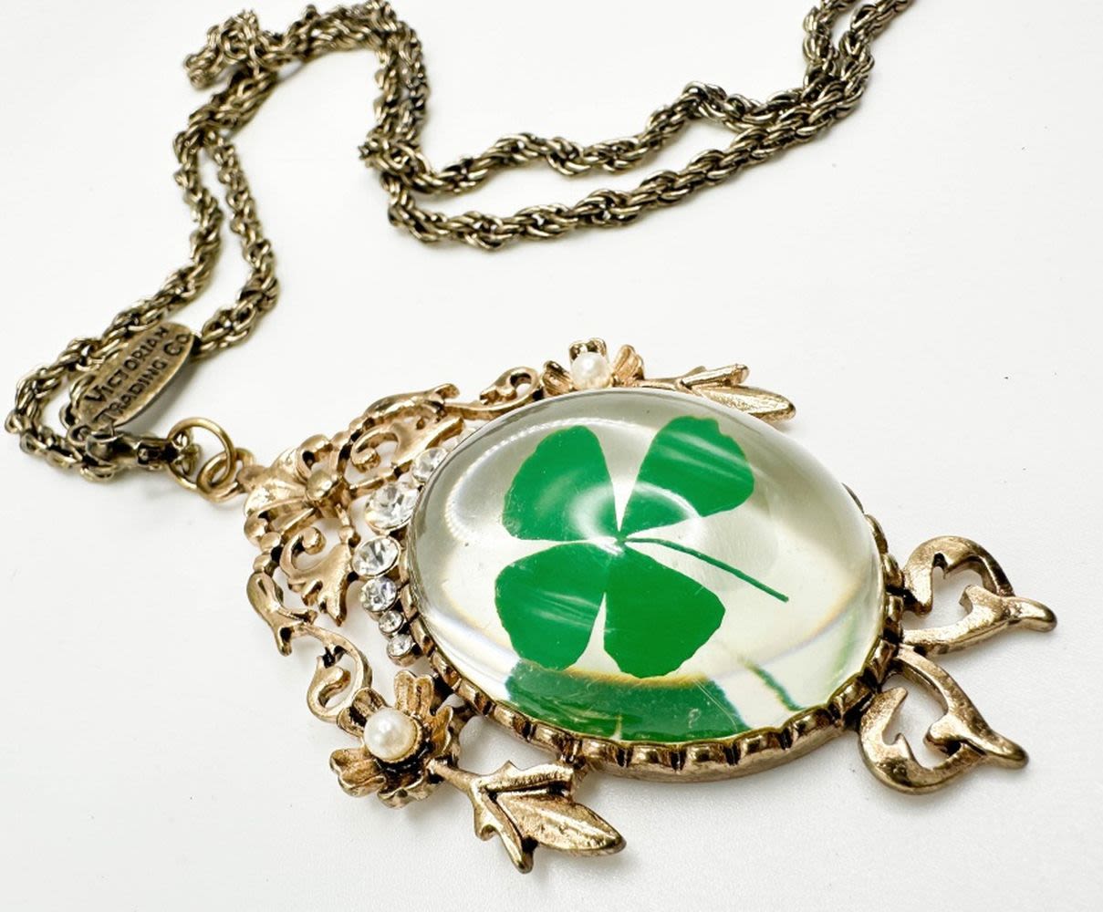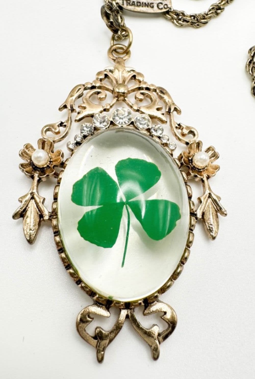 LARGE GLASS SHAMROCK NECKLACE , HUGE HEAVY PENDANTN SO PRETTY !