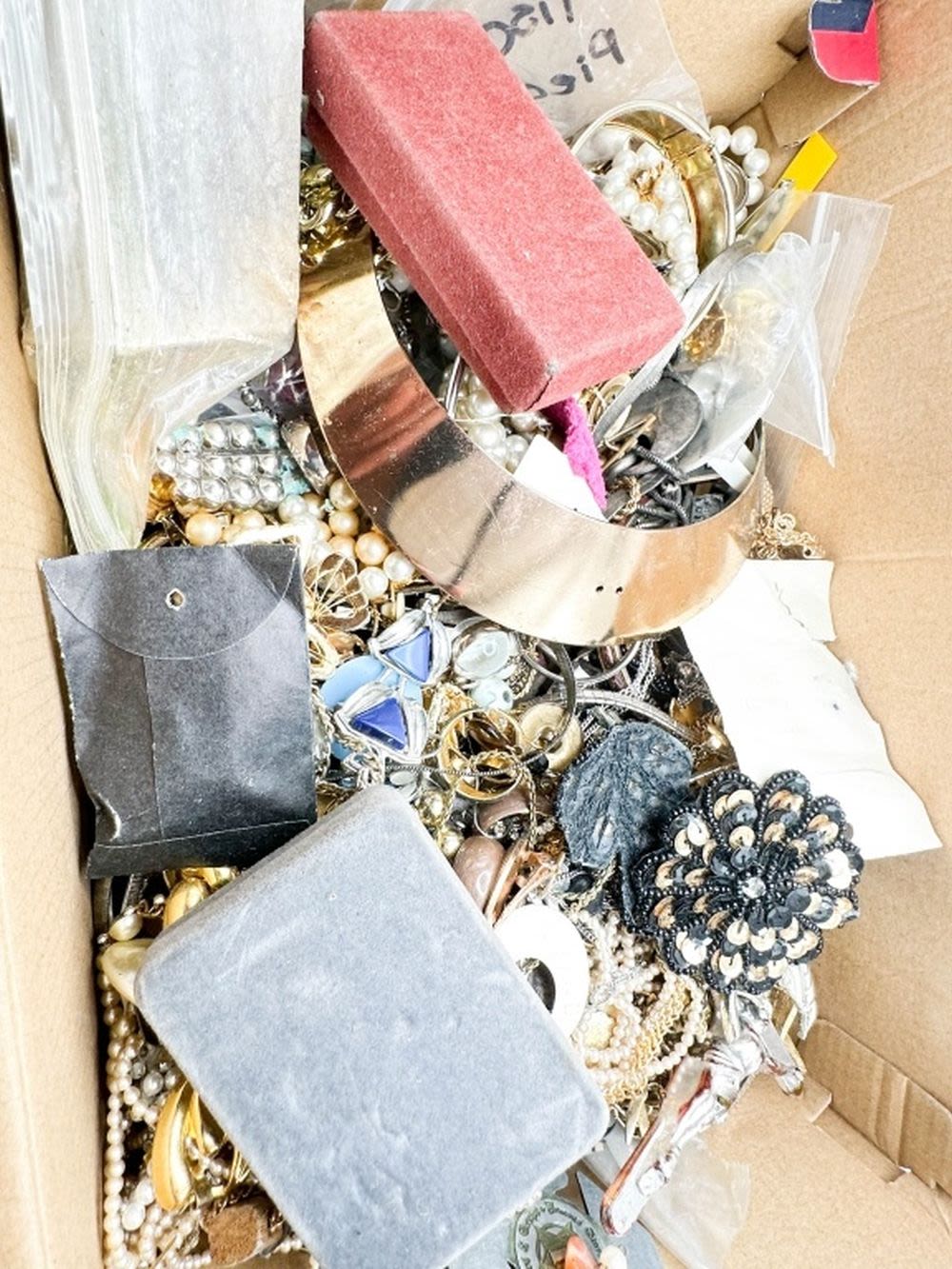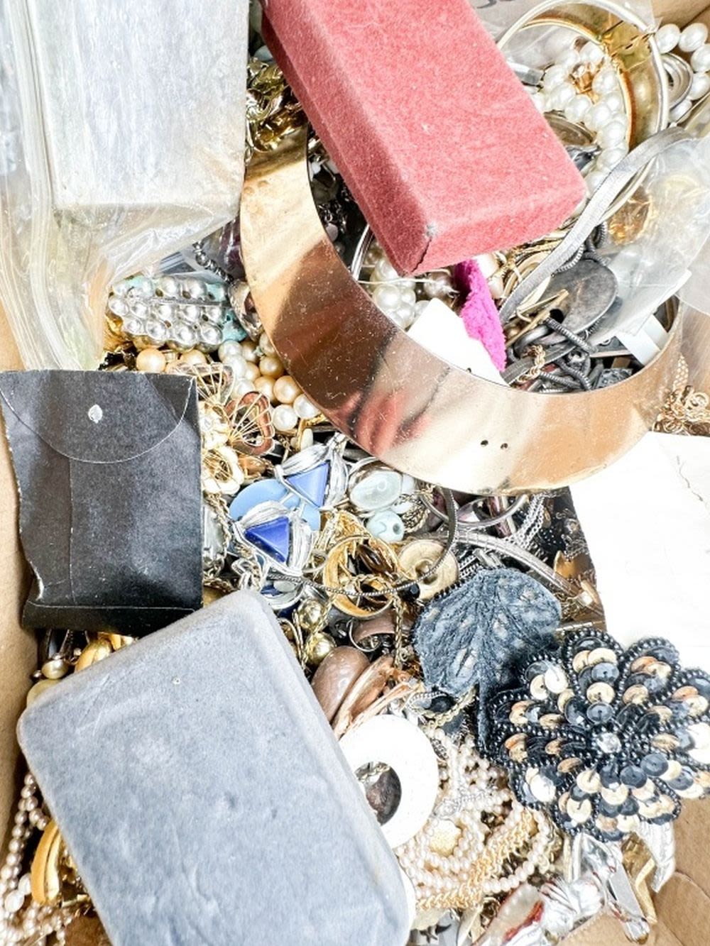HALF SIZE TREASURE BOX !!! BROKEN JEWELRY FOR CRAFTS AND REPAIR , FAST FLAT RATE PRIORITY SHIPPING !!!