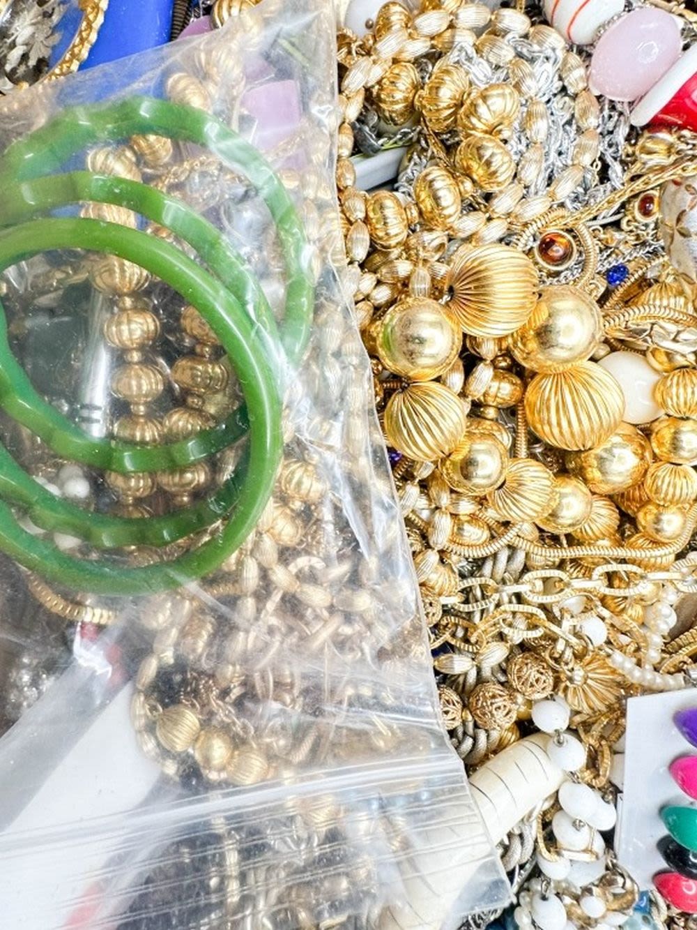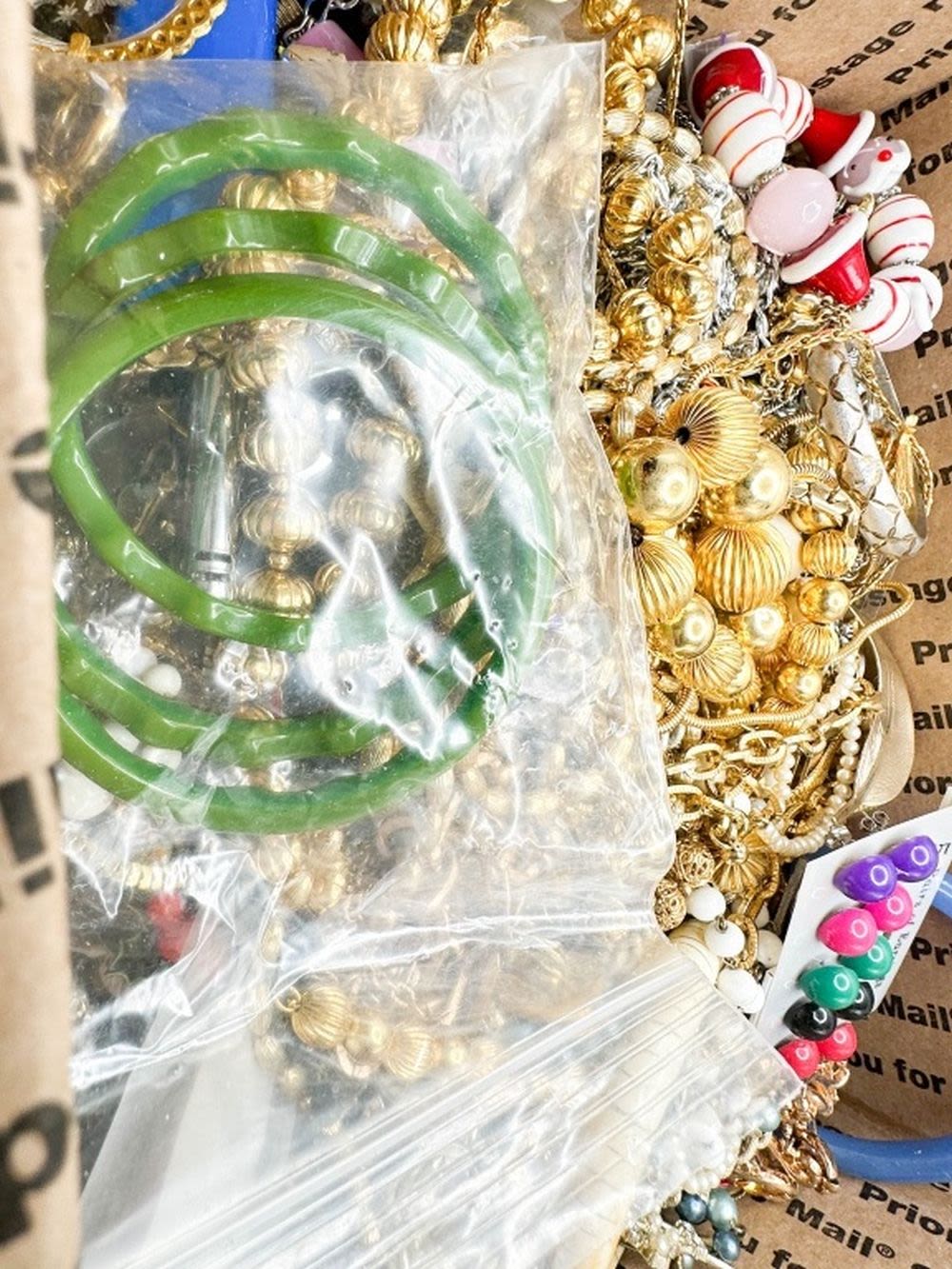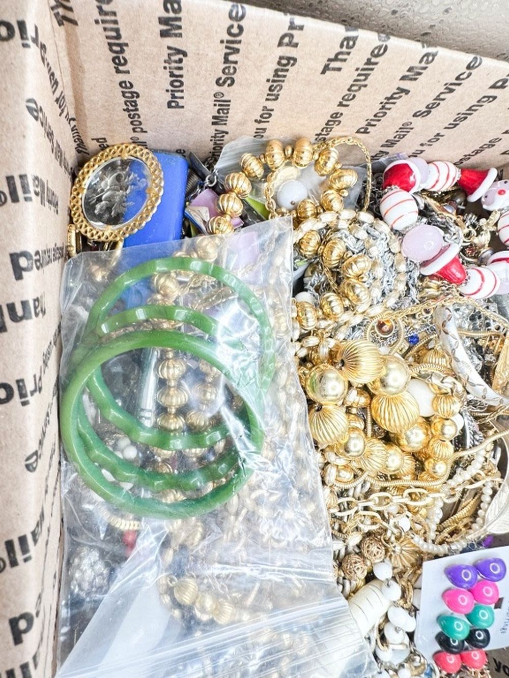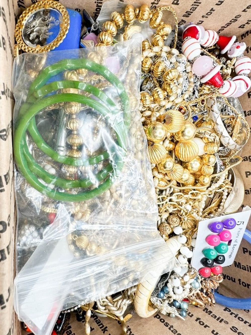 TREASURE BOX !!! SOME WEARABLE AND MUCH BROKEN JEWELRY FOR CRAFTS AND REPAIR , FAST FLAT RATE PRIORITY SHIPPING !!!