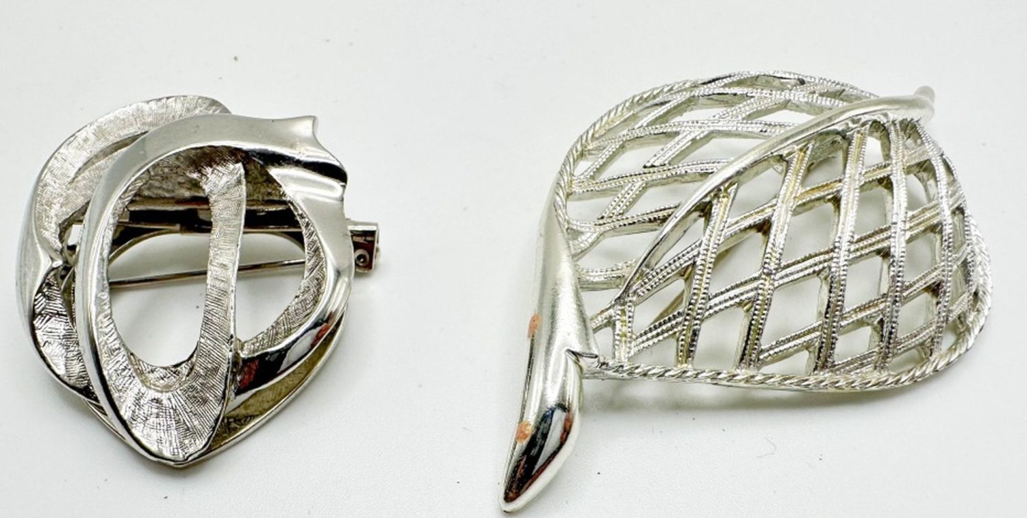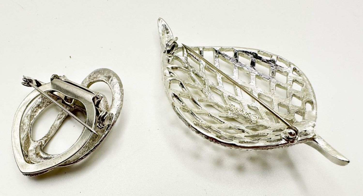 SARAH COVENTRY STRAWBERRY BROOCH AND OTHER SILVER TONE SWIRL BROOCH