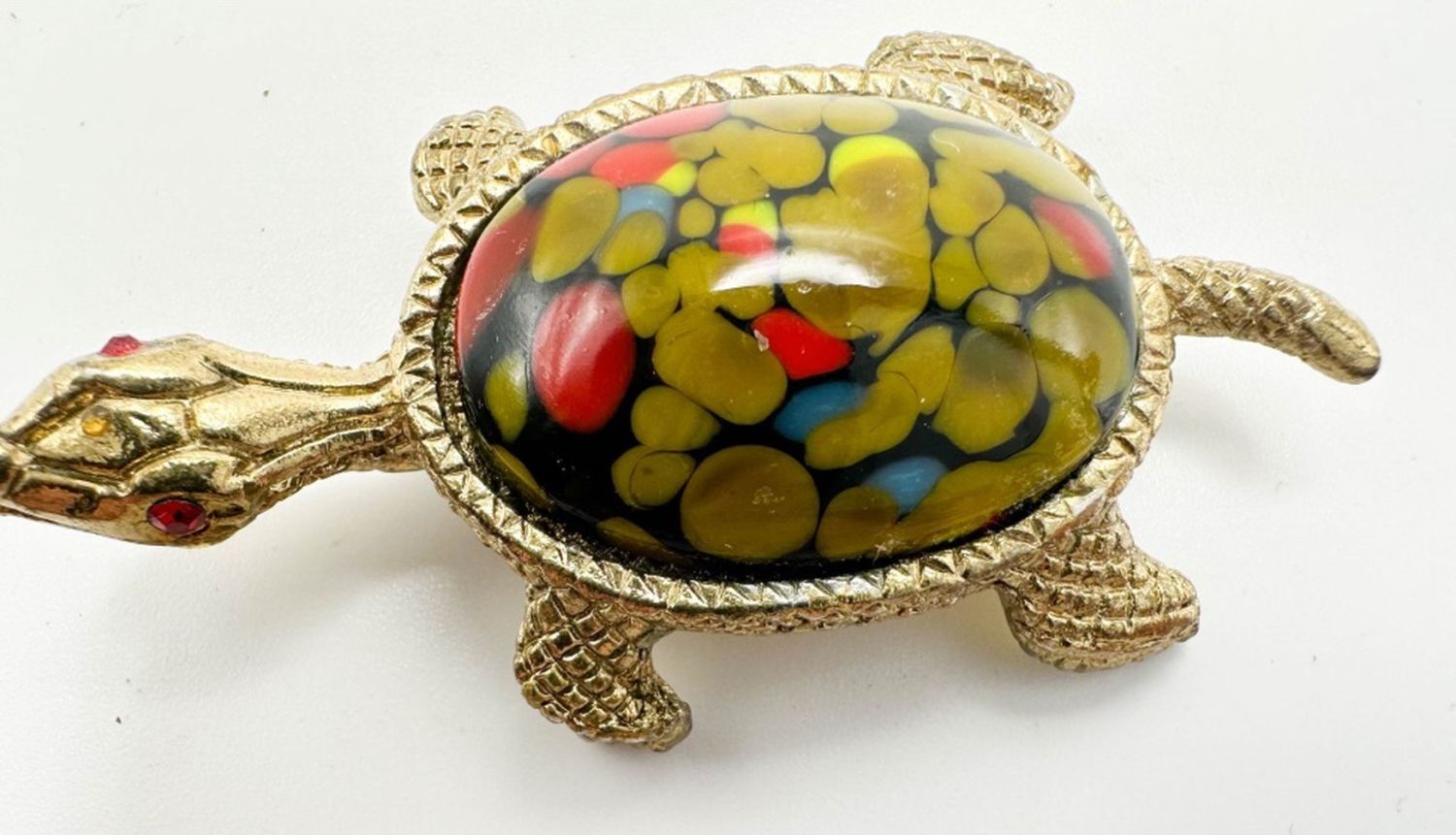 AMAZING TURTLE BROOCH ! GLASS SHELL, LOOK HOW PRETTY !!!