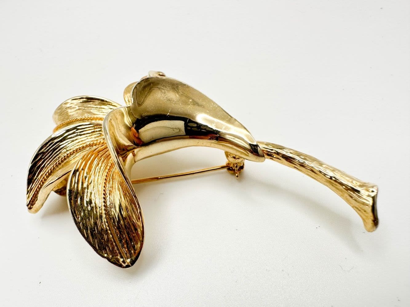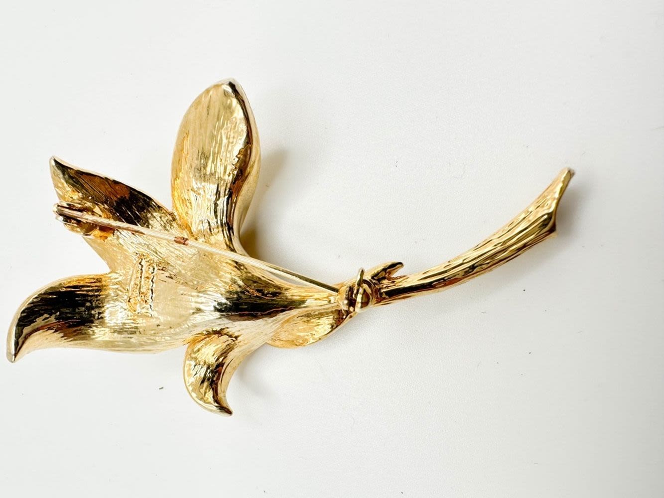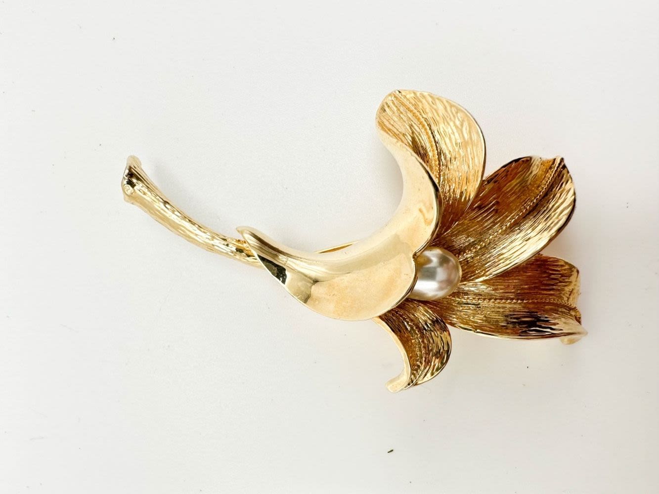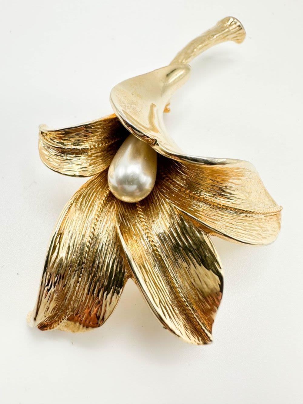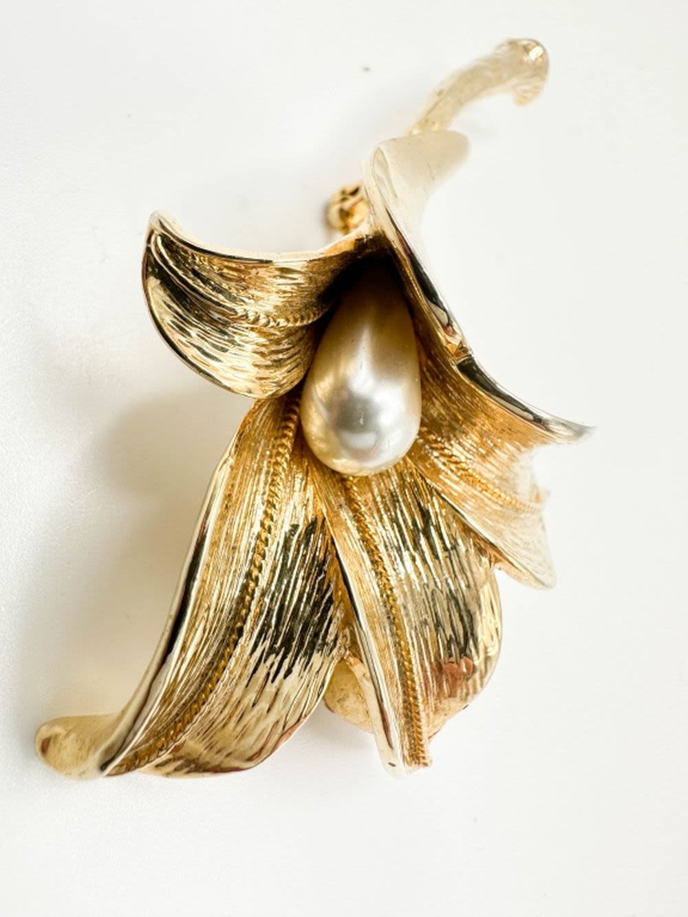 ALLISON REED SIGNED FLORAL LARGE BROOCH, WITH FAUX PEARL CENTER