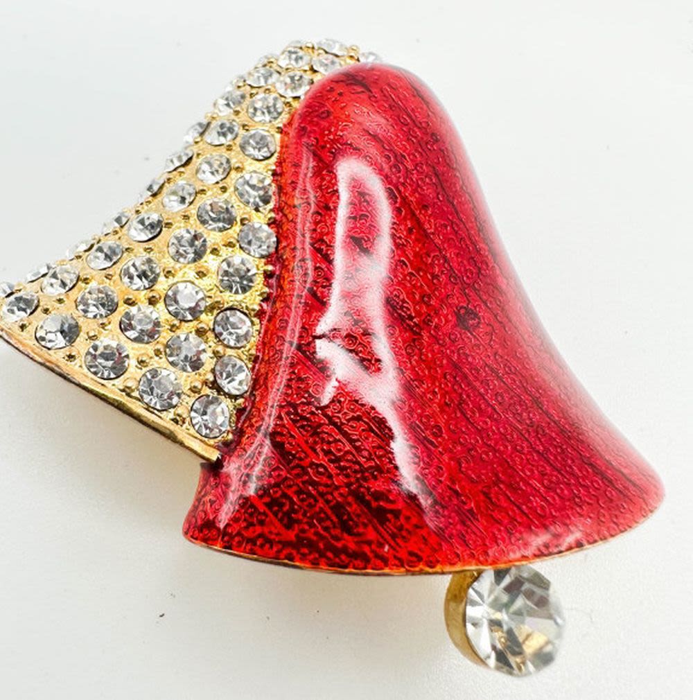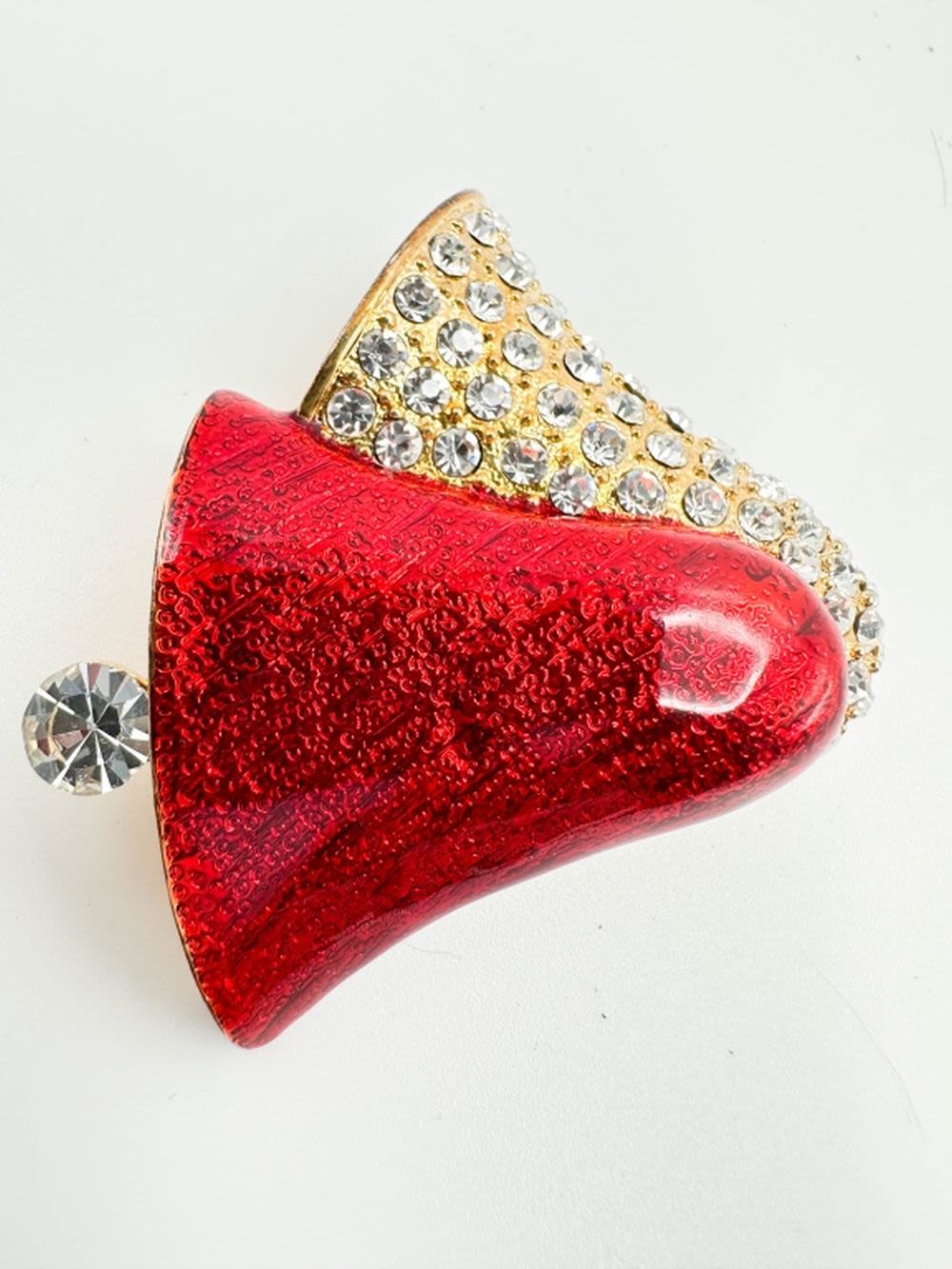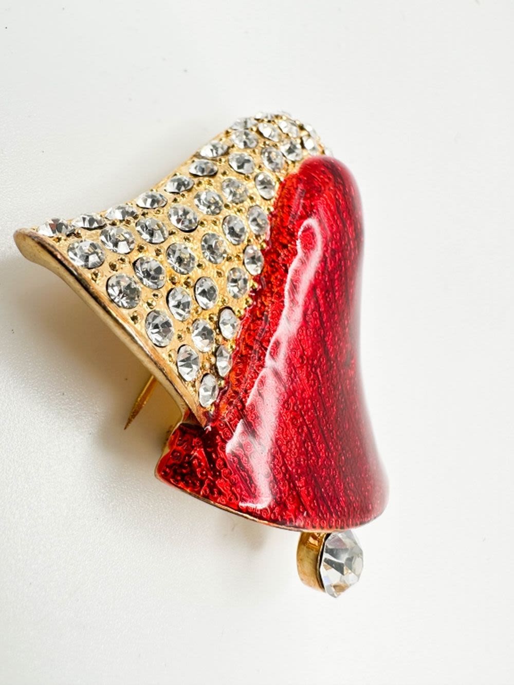 EISENBURG ICE BELLS BROOCH WITH RED AND CLEAR STONES DOUBLE BELLS , STUNNING VINTAGE, FAST IN HOUSE SHIPPING, EISENBURG ICE, LIKE NEW CONDITION !!!