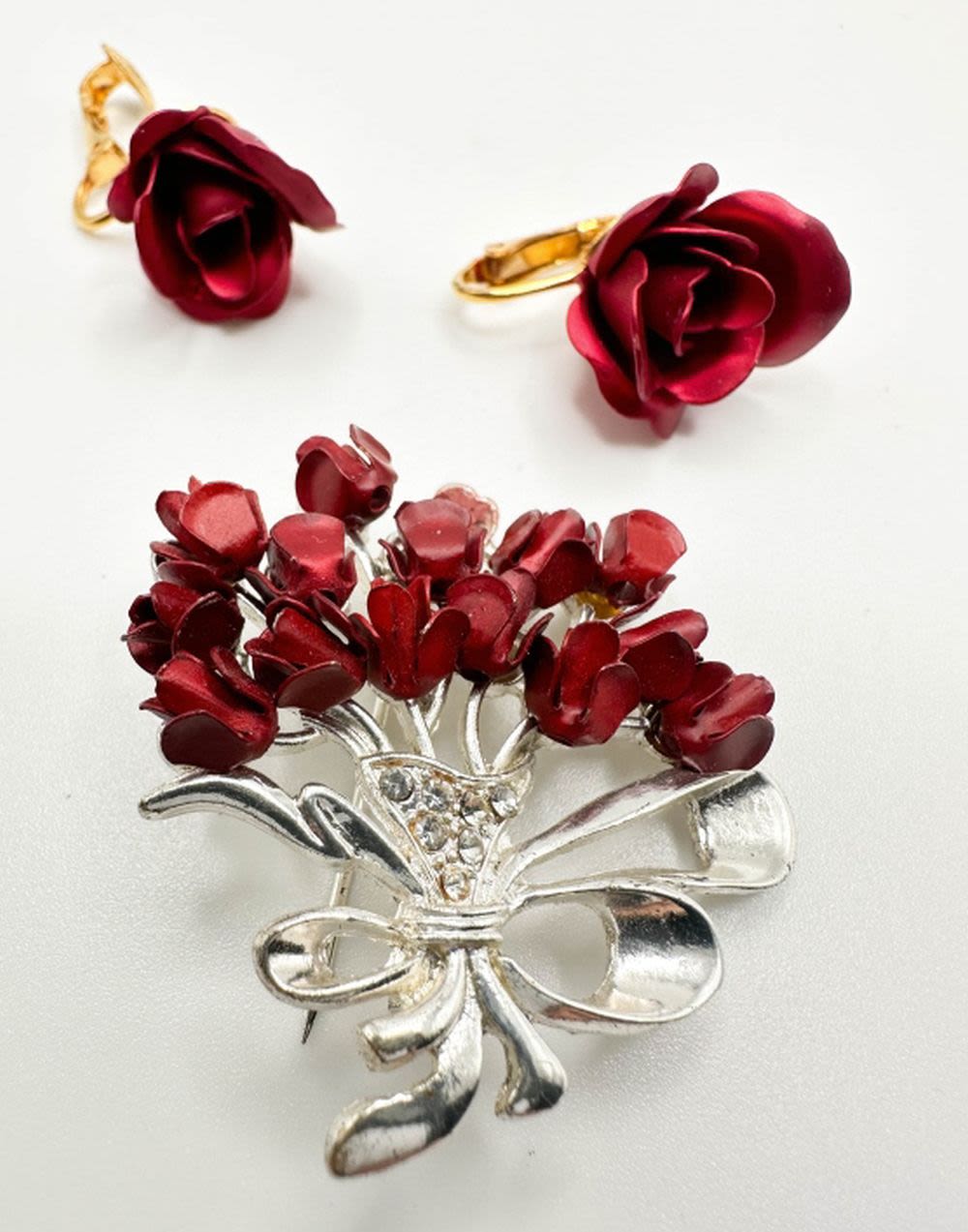 ROSES FLORAL BROOCH, EARRINGS SET