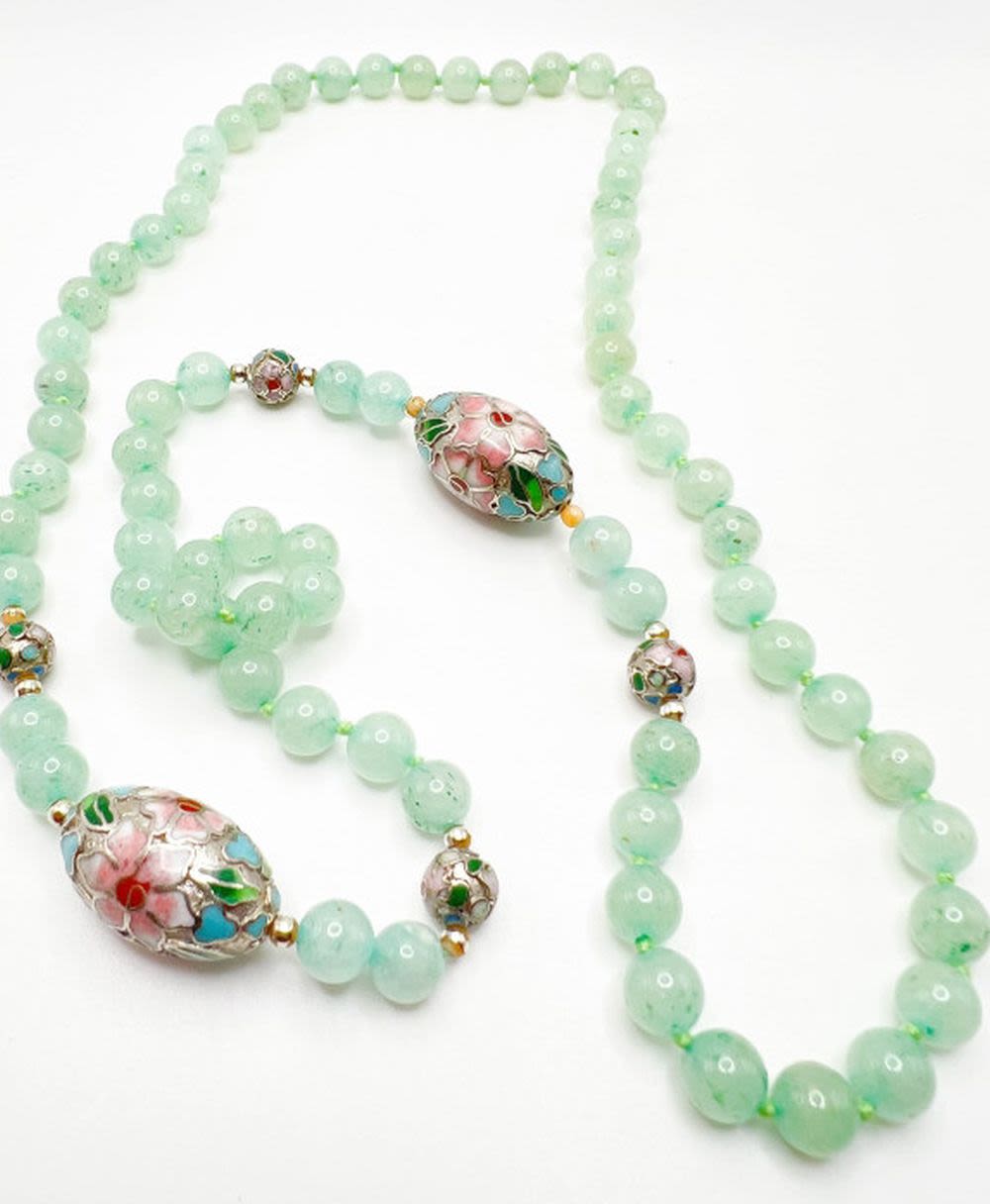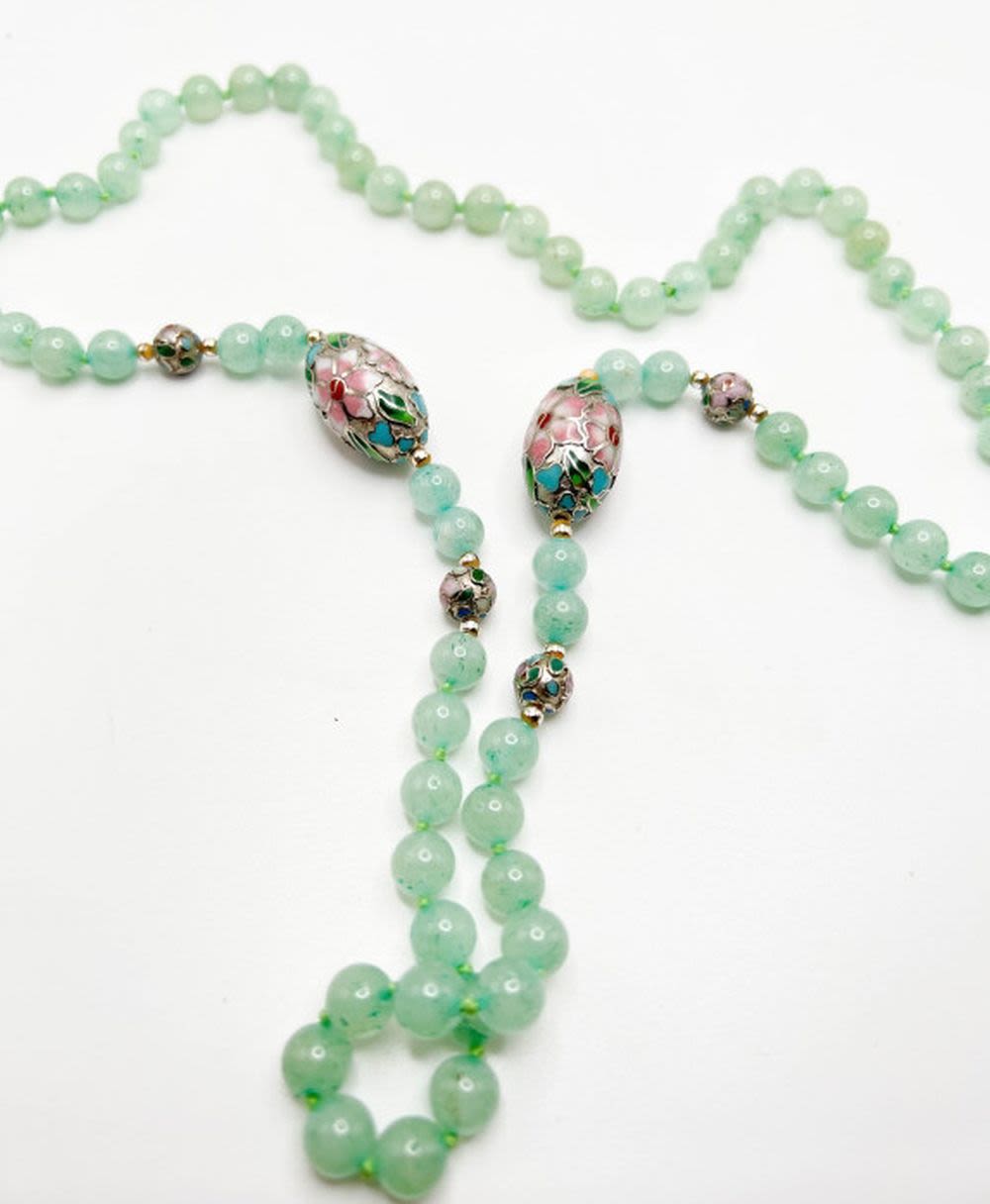 STUNNING GREEN GLASS NECKLACE WITH CLOISSONE LARGE BEADS, AMAZING