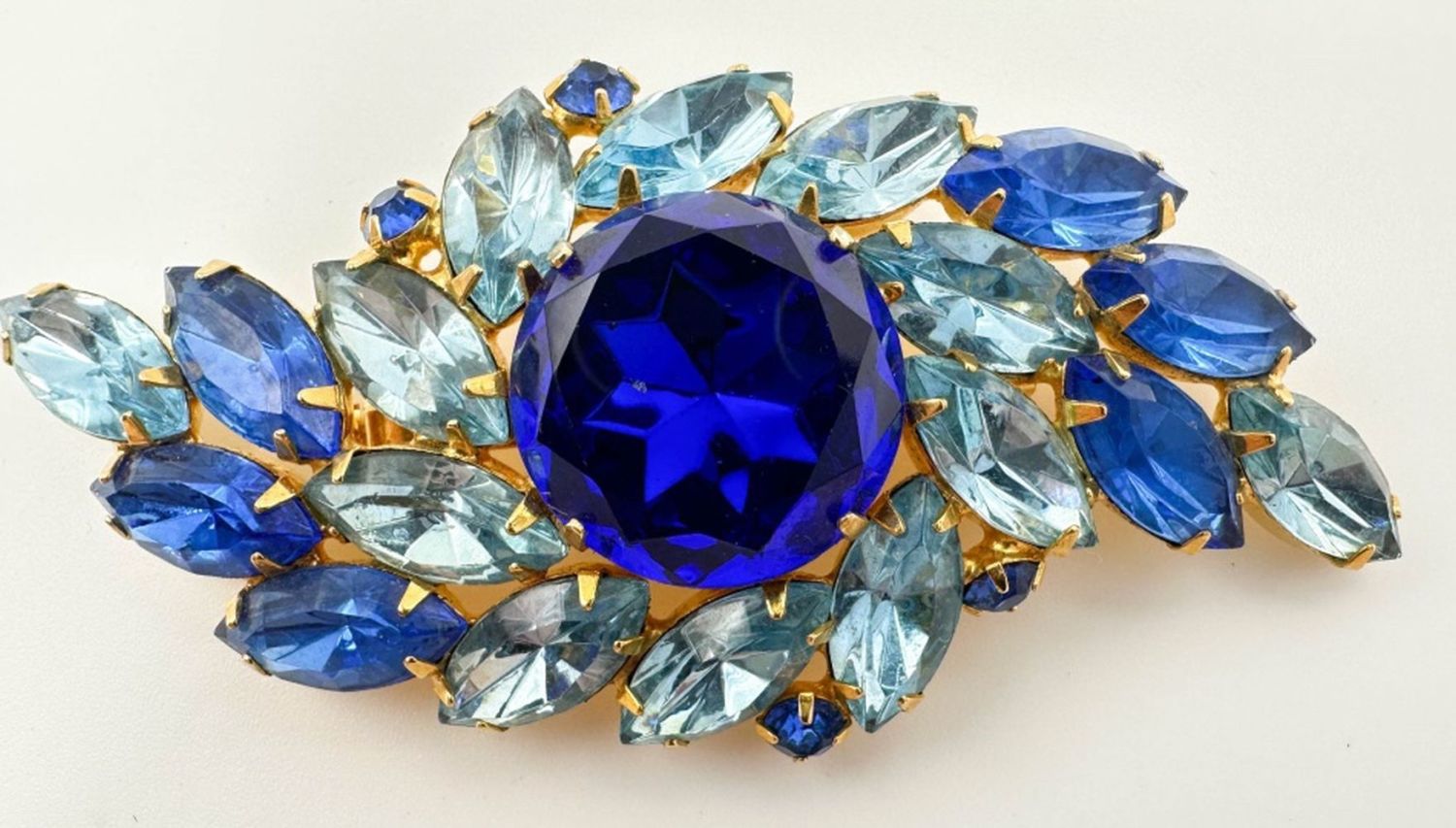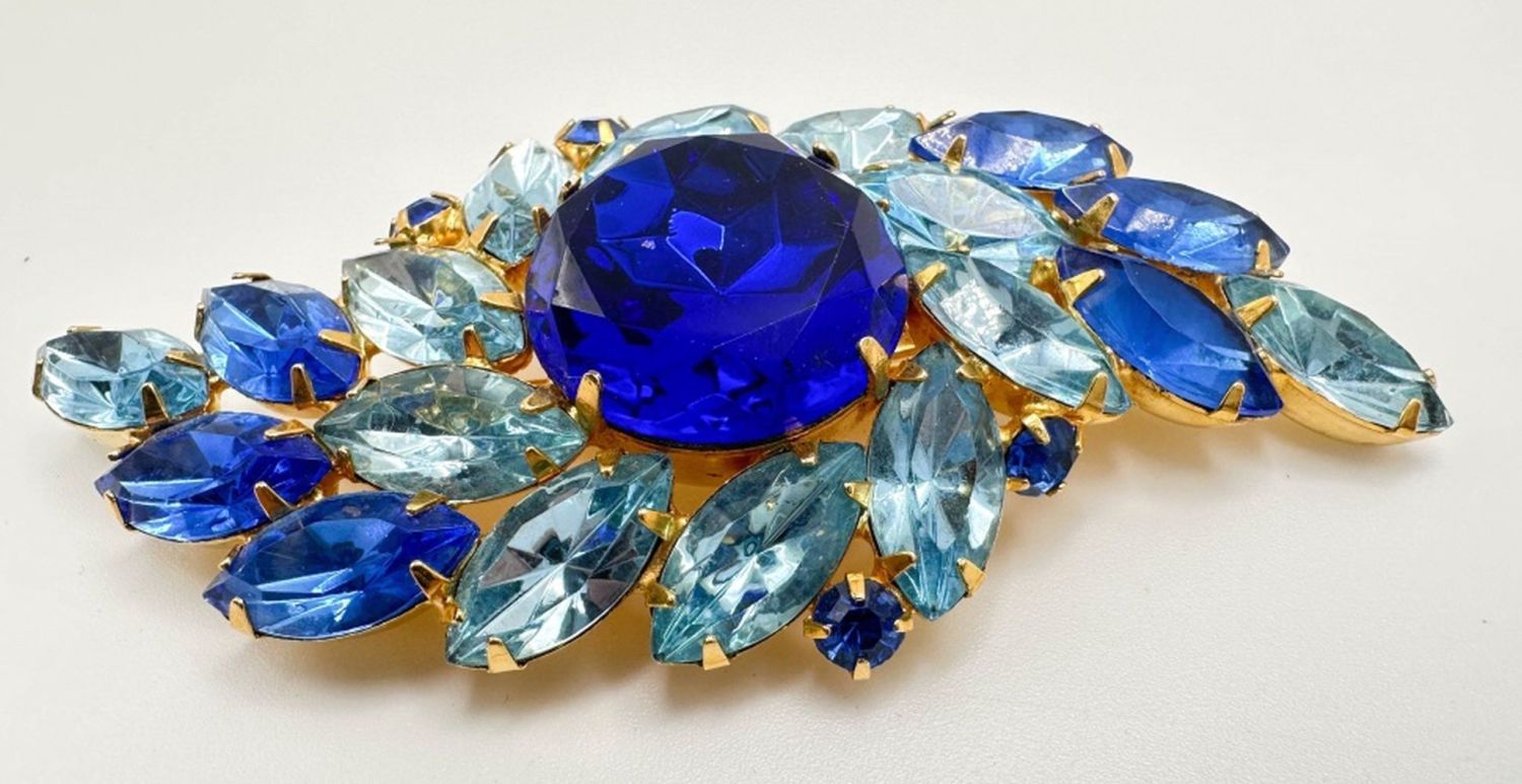 ABSOLUTE AMAZING IGHT AND DARK BLUE GIVRE STONES BROOCH WITH LARGE DARK CENTER BLUE FACETED STONE , AMAZING !!!!!