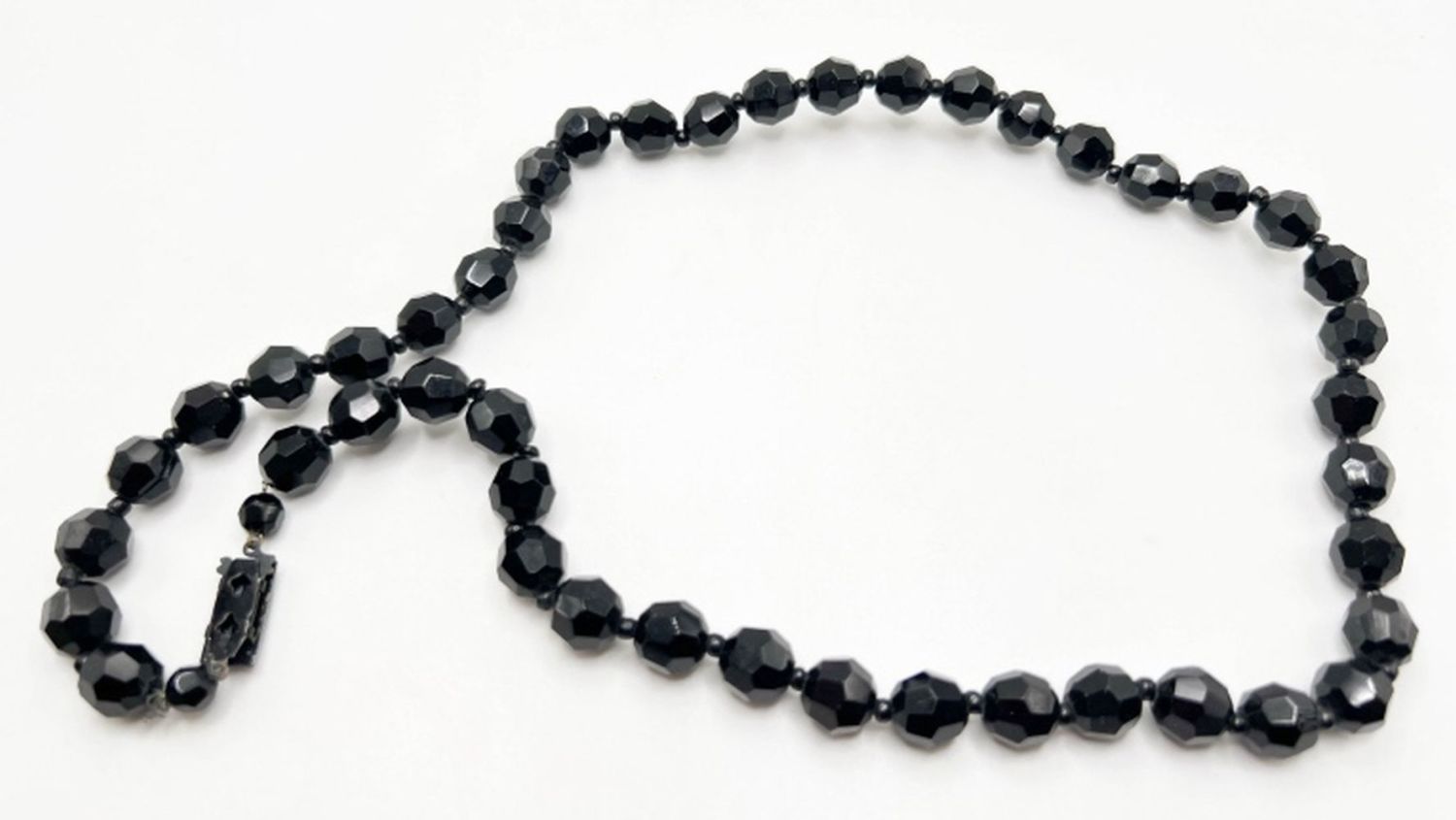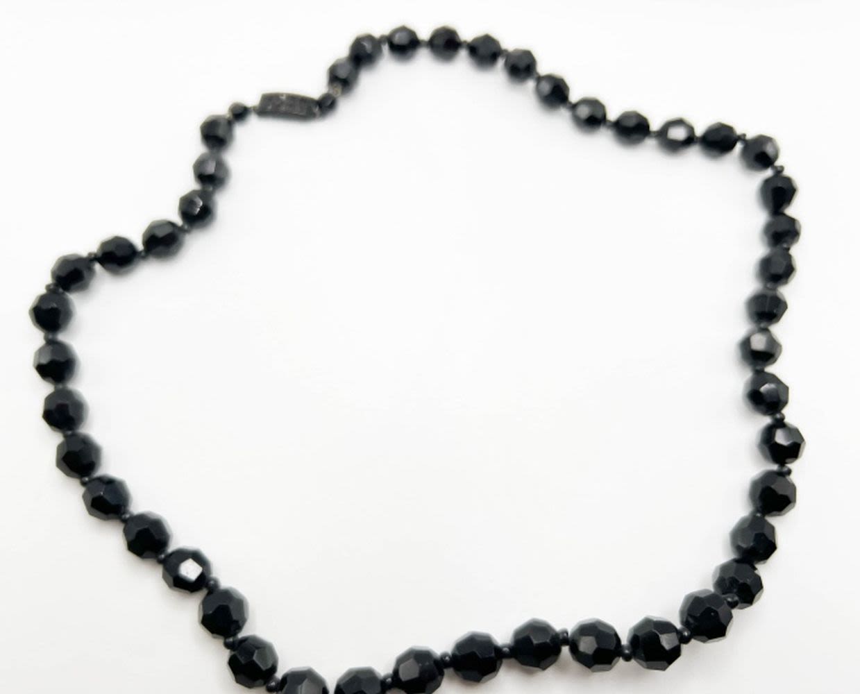 BLACK GLASS FACETED STONE NECKLACE