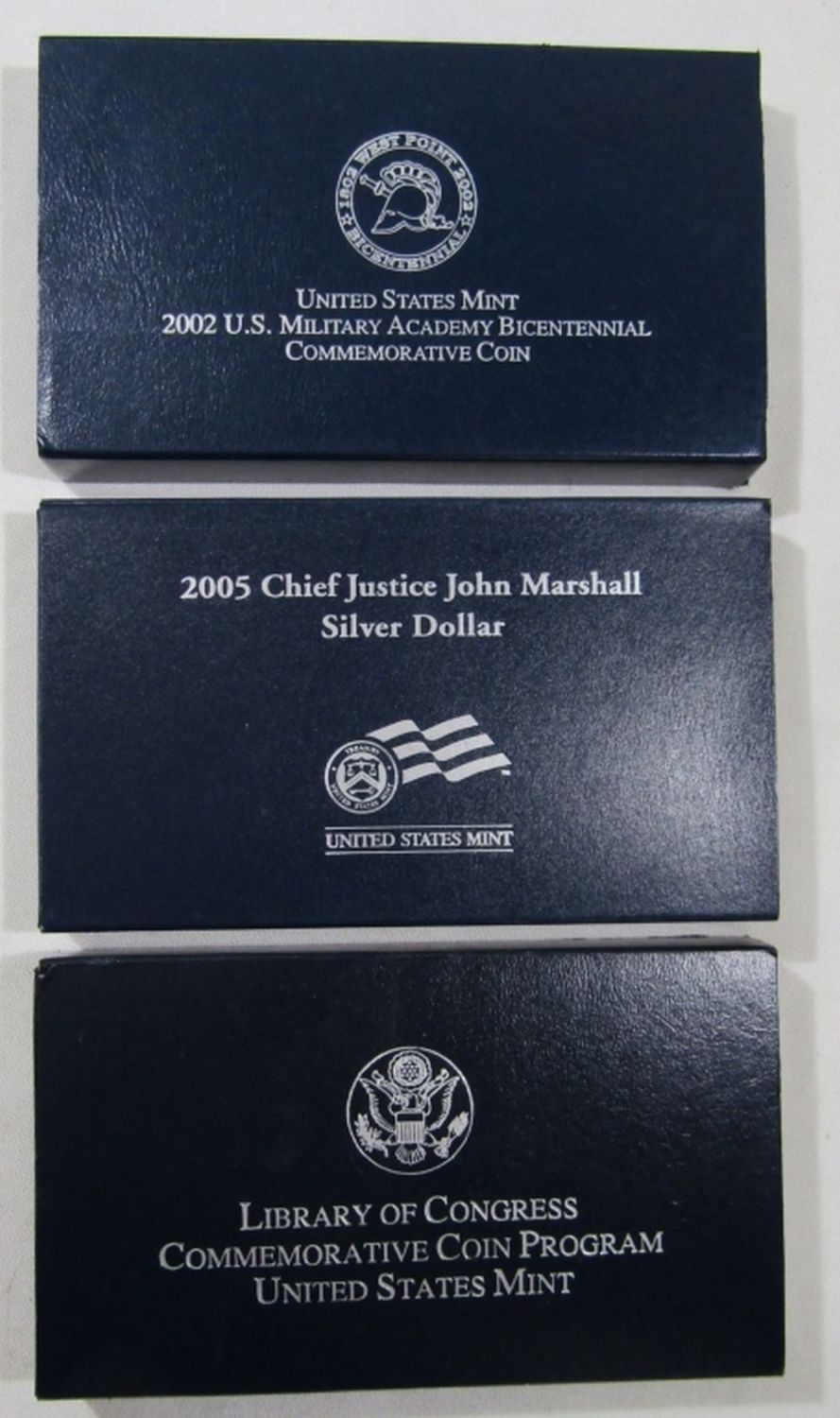 2000 PROOF LIBRARY OF CONGRESS SILVER DOLLAR, 2005 CHIEF JUSTICE JOHN MARSHALL PROOF SILVER DOLLAR, AND 2002 WEST POINT PROOF SILVER DOLLAR