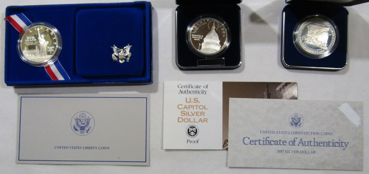 1987 US CONSTITUTION SILVER DOLLAR, 1986 LIBERTY SILVER DOLLAR, AND 1994 BICENTENNIAL OF CAPITOL SILVER DOLLAR